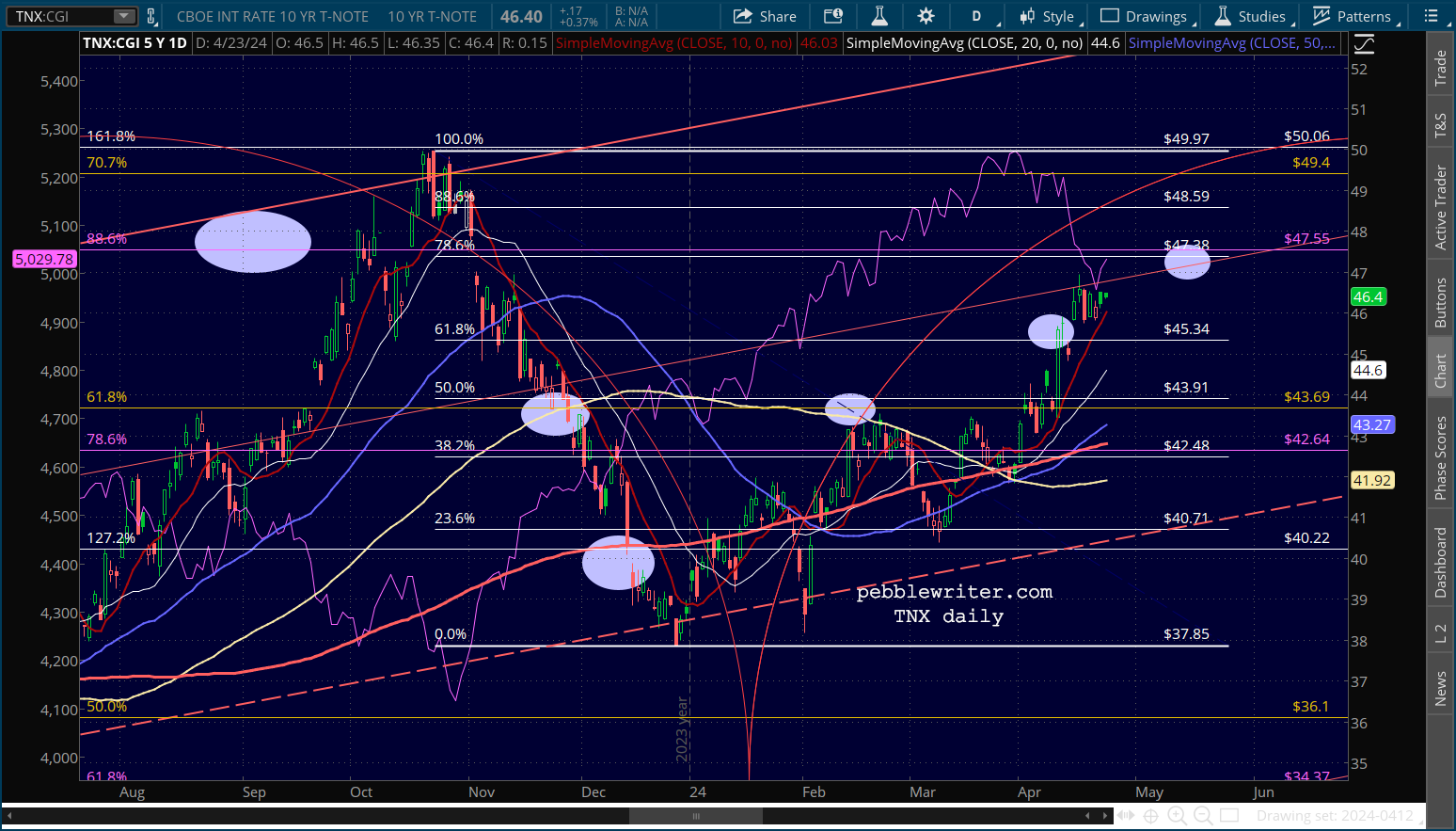 TNX remains in position to break out, but has yet to do so in the absence of a catalyst.