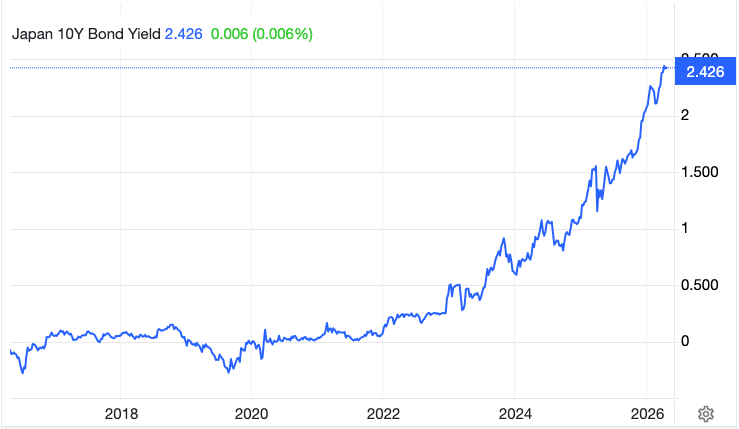 …which has driven interest rates to historically high levels – at least by Japan’s standards. When you have debt/GDP of over 230%, even 2.5% is a disaster.