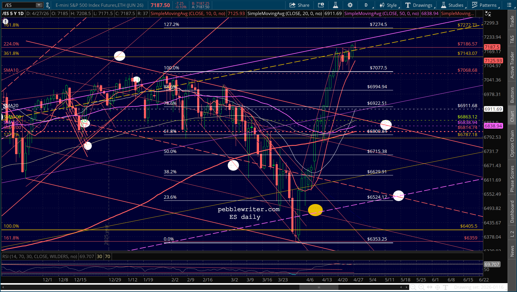 While ES is hanging around important overhead Fibonacci resistance, SPX is still in no man’s land.