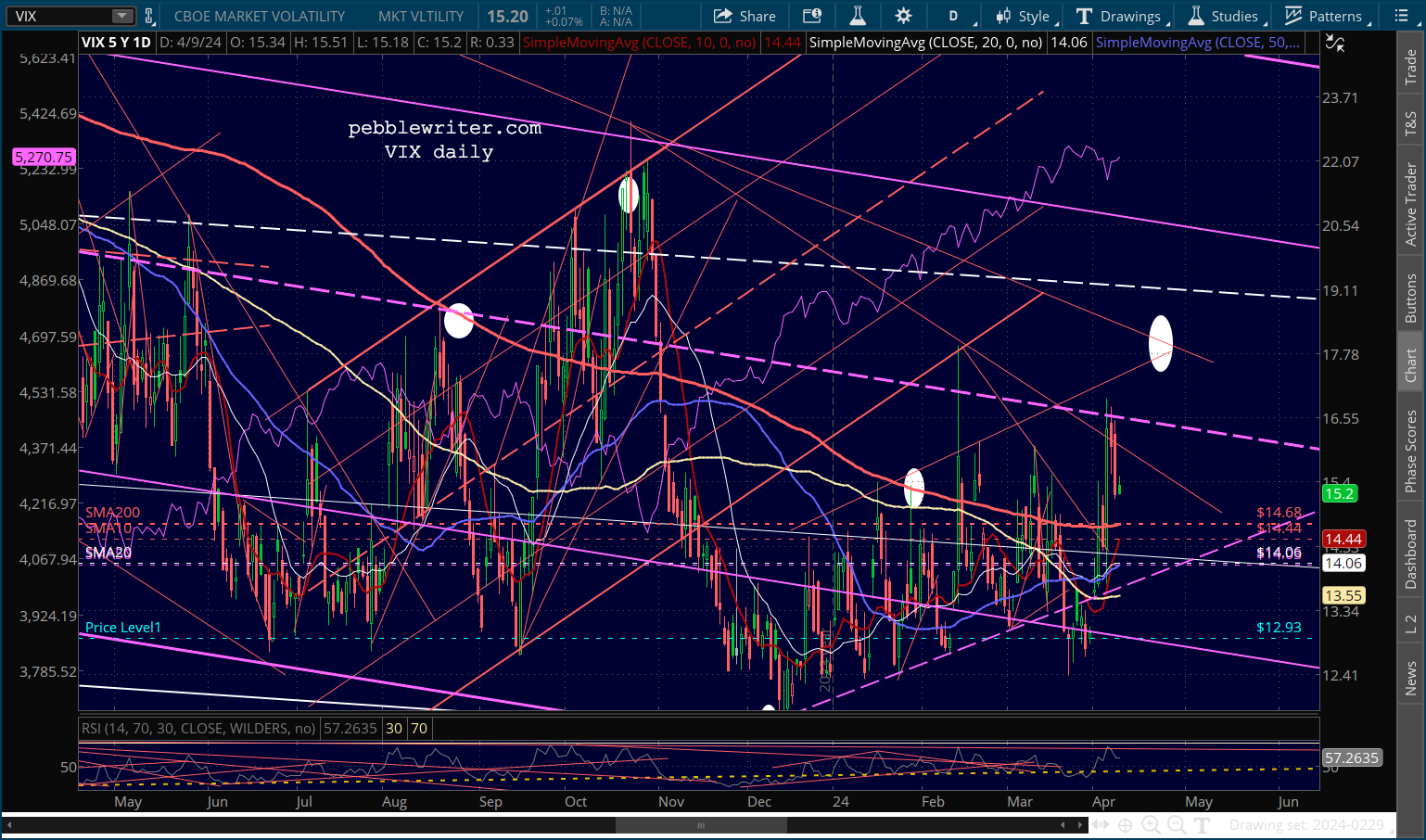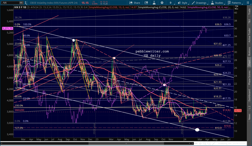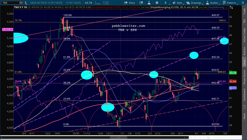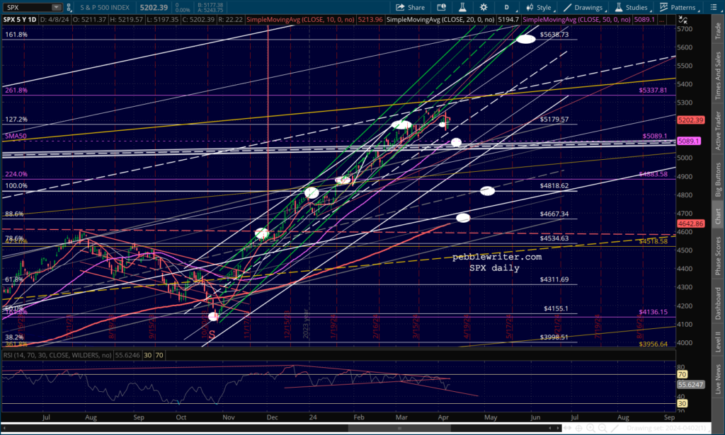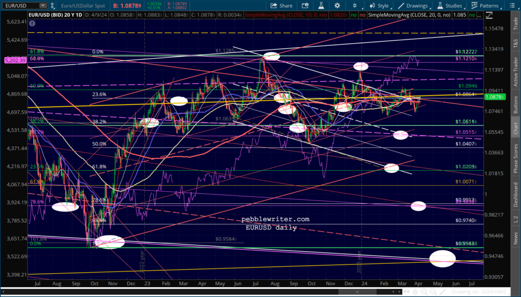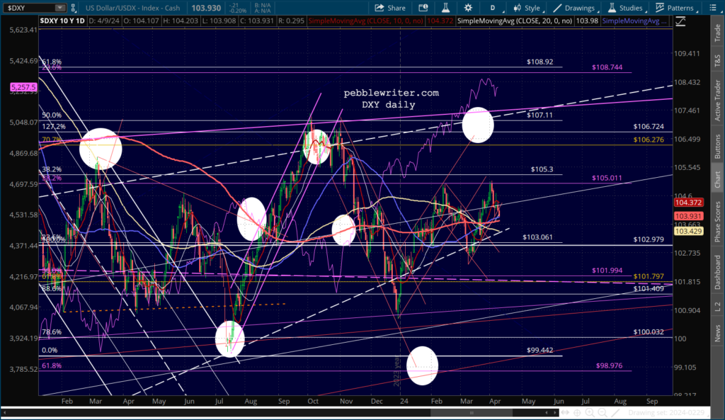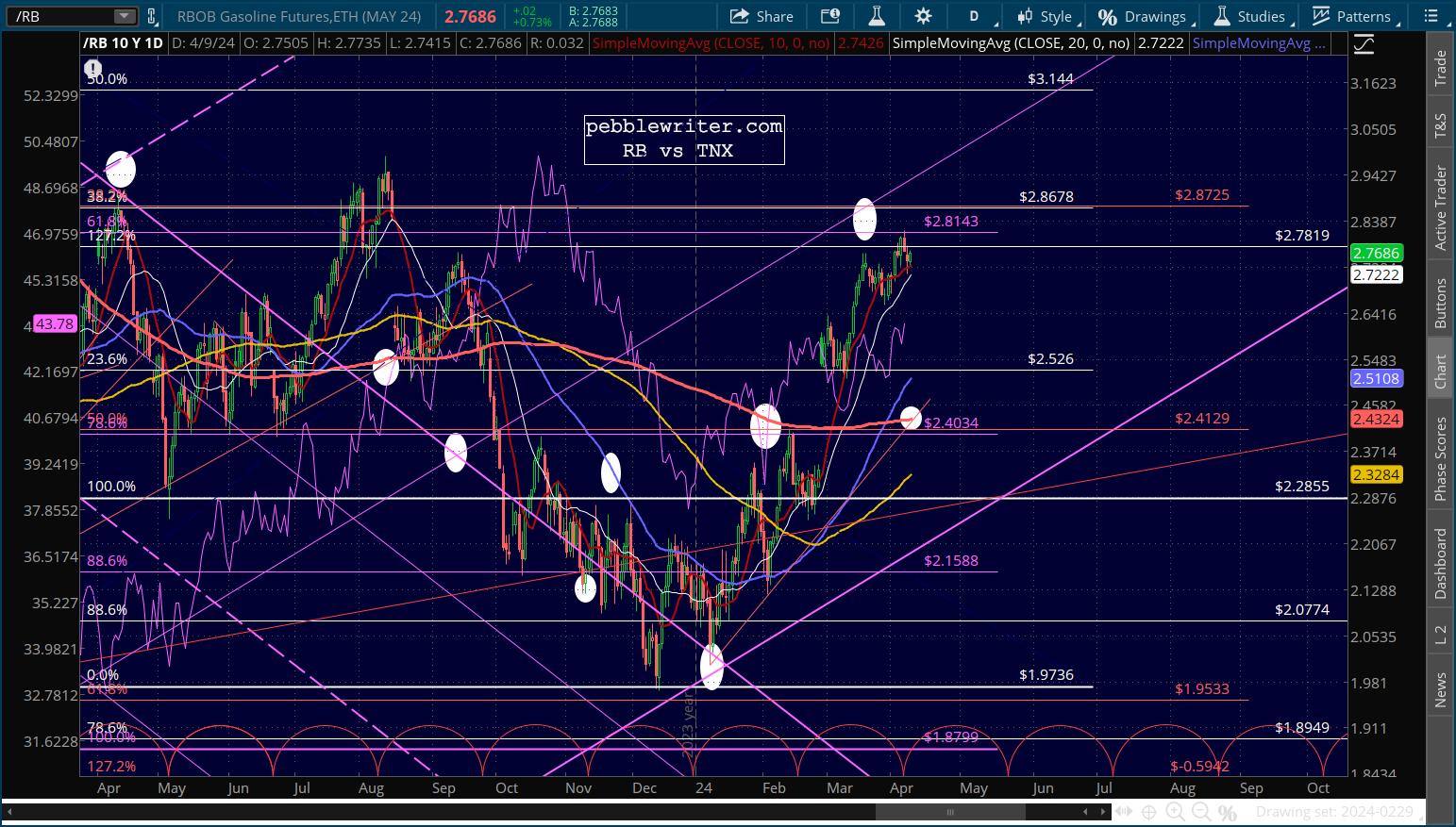 CL and RB are overbought, but the situations in the Middle East and in Ukraine argue against a decline in inflation or interest rates.