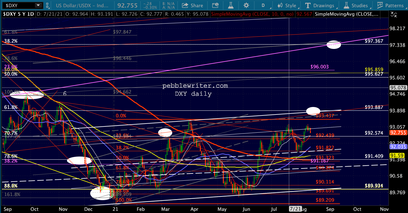 continued for members…There is nothing bearish happening in any of our charts. Yet, many are throwing off hints of equity downside. Still looking for a correction to the 3.618 extension. Timing is looking like late August.