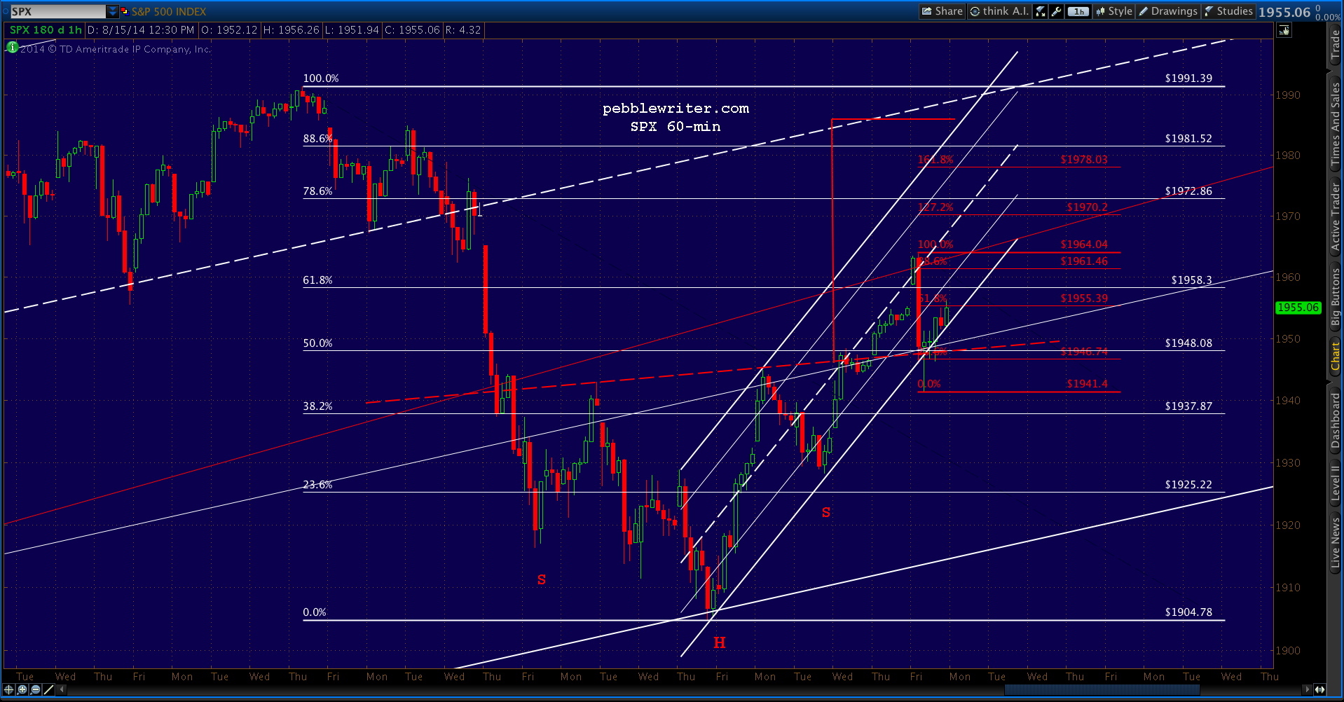 ES has ramped about 10 points. SPX is still working on the IH&S pattern forecast last week. The neckline was defended on Friday, so I see no reason for it not to play out — other than a raft of economic and Fed news this week.
