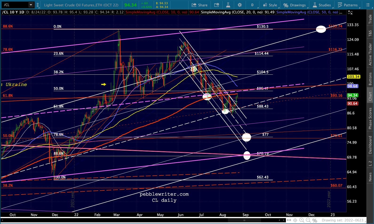 CL has backtested its SMA200 again, and RB is still slipping lower.
