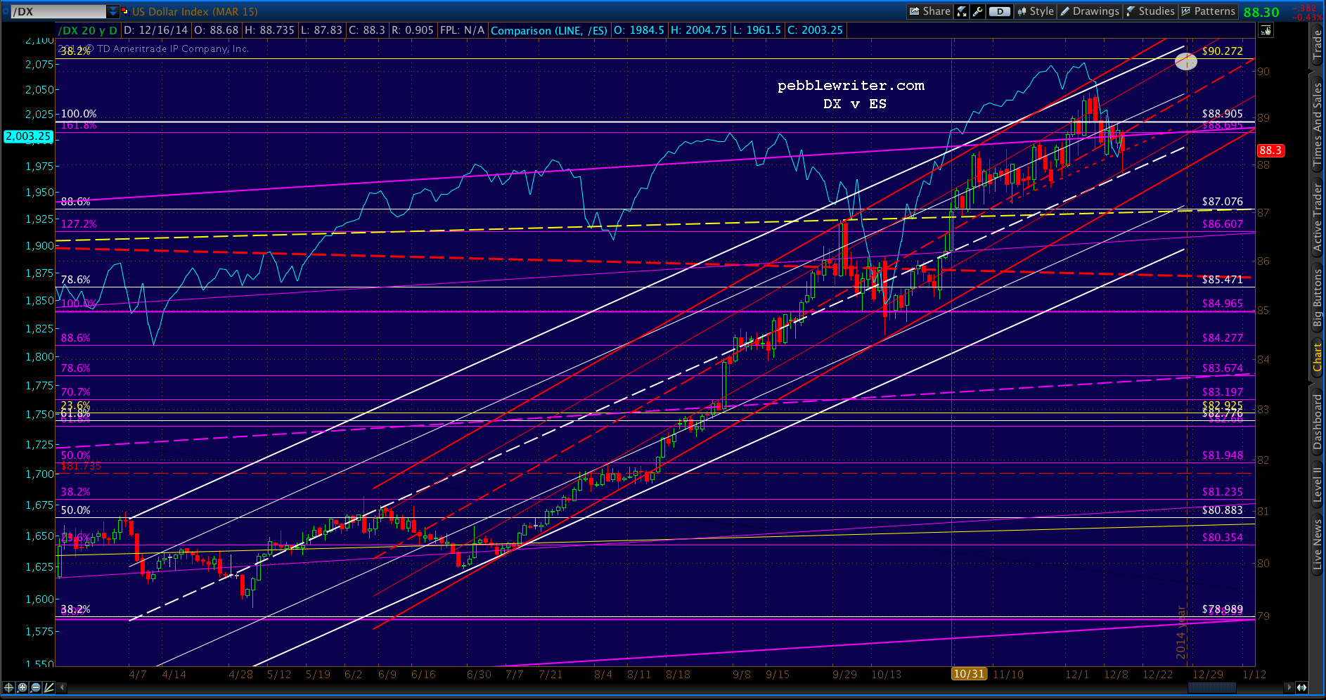 One side note, while TNX should rebound to backtest the broken white channel midline or higher, the charts still suggest a large drop shortly after year-end: the yellow .786 at 1.92 or even the .886 at 1.78 (further out into late Feb or March.)