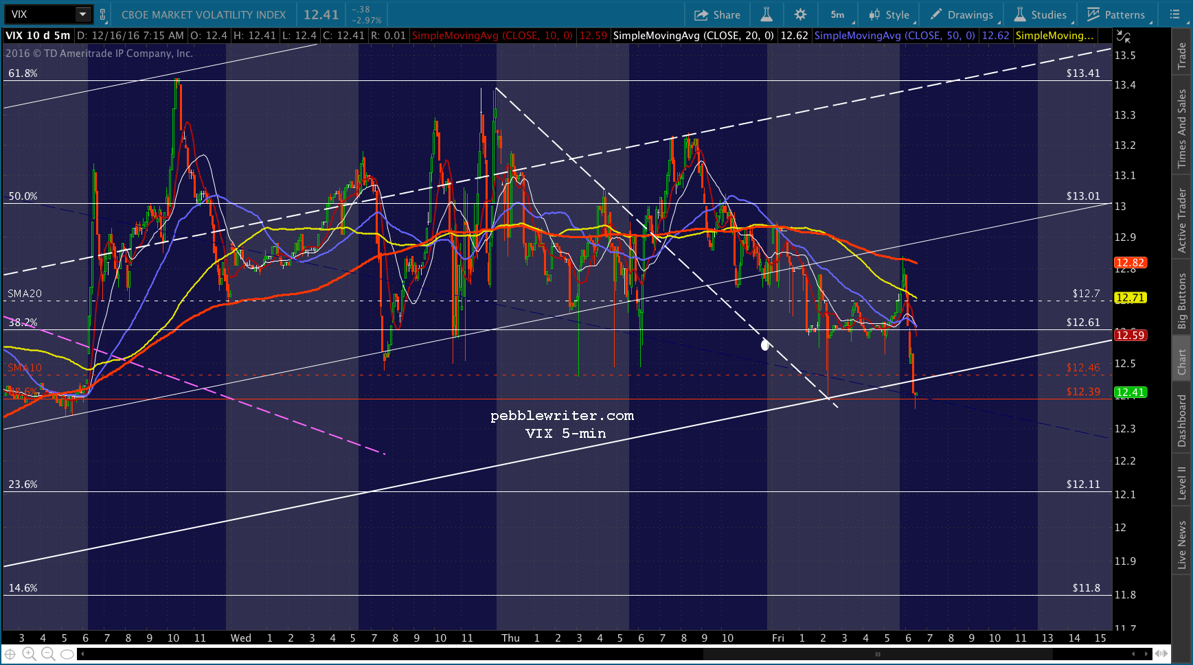 It didn’t come close, which means today’s decline can move ahead, or that the price movement has been delayed. That’s why we’ll want to watch the indicators especially carefully. CL is angling to move stocks higher. But, that’s no different than any other day. I’m more interested in VIX, and whether it can finally break out past that .618 Fib at 13.41.