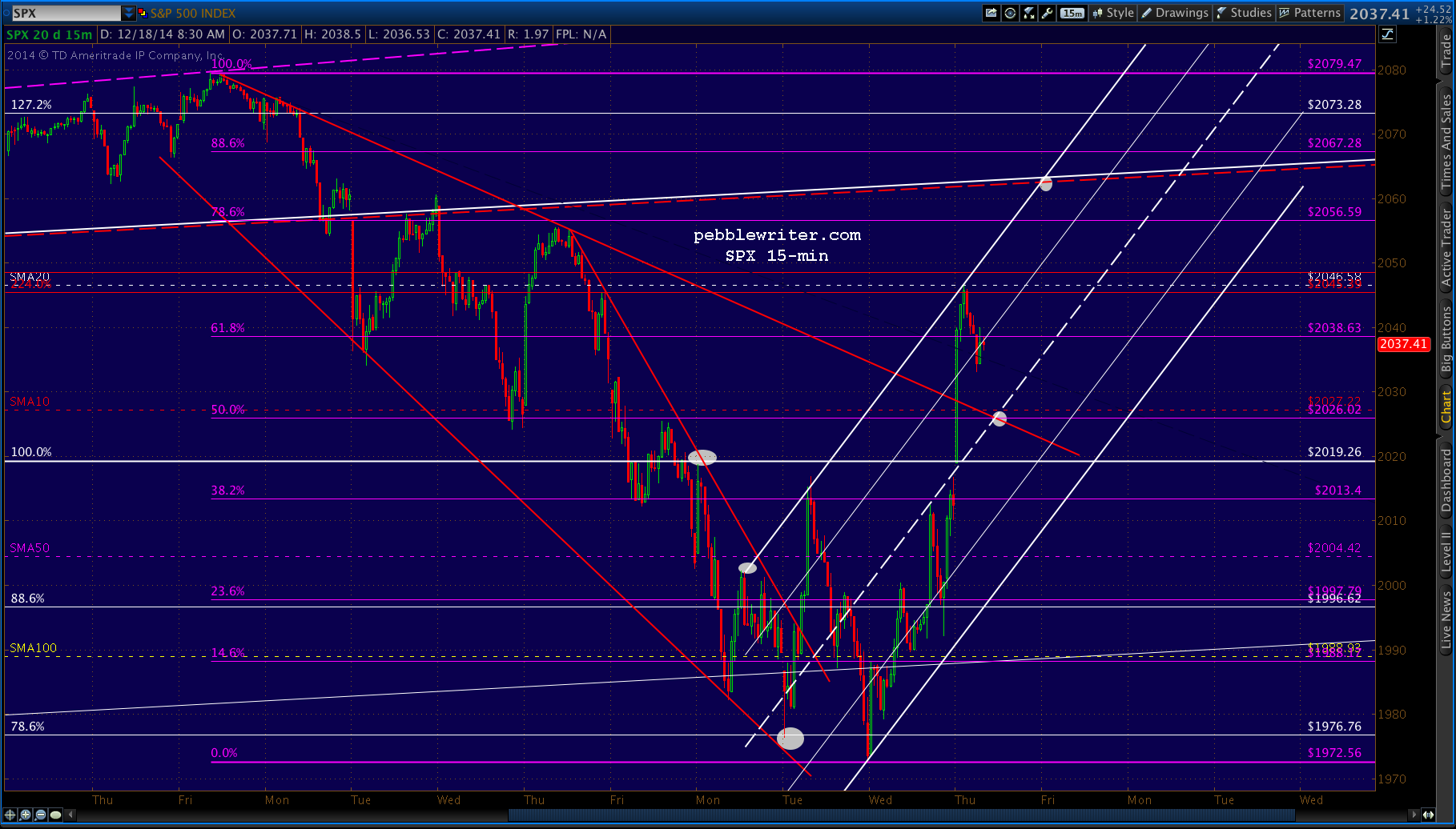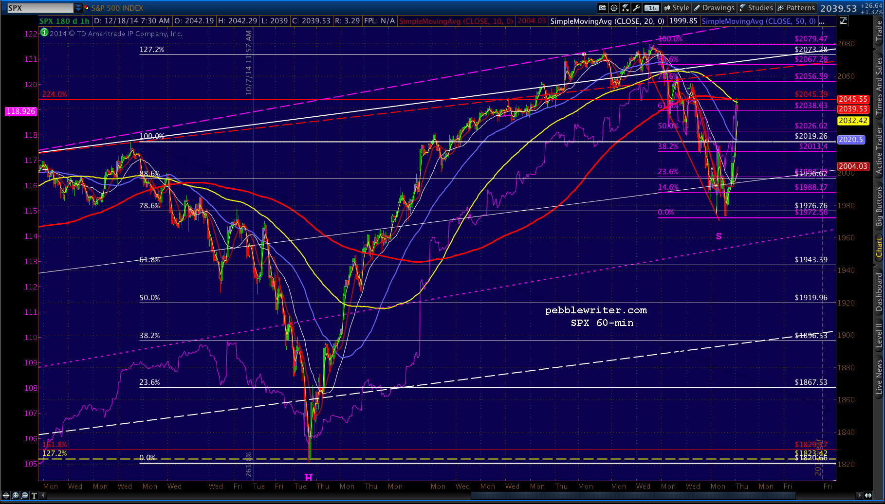 As for key levels, look for resistance at the SMA10 (2040, also the purple .618) and SMA20 (2050.)