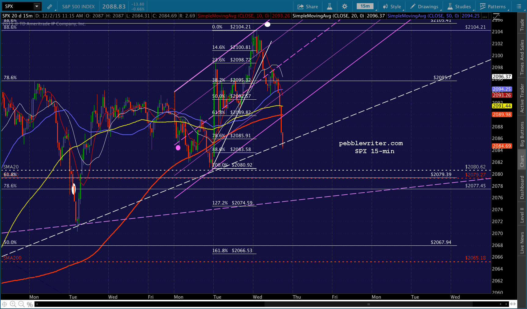 Here’s the last shot of the day. Long here at the potential support from the .618/SMA20.
