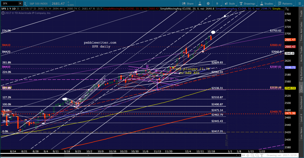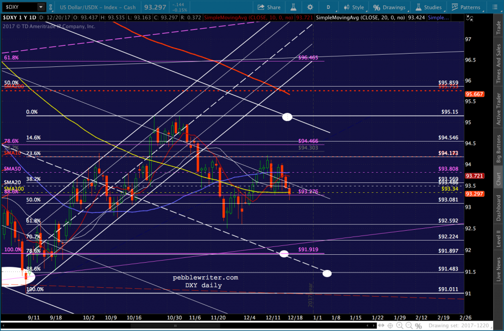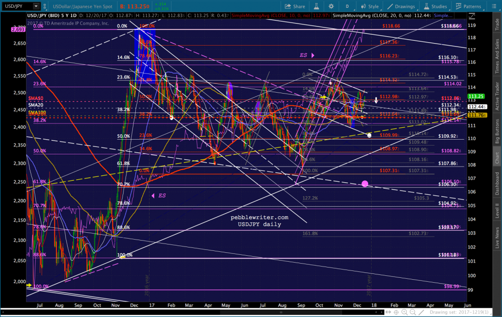 The dollar continues to fizzle, but USDJPY is rallying anyway. CL, RB and VIX are jumping into the fray just in case, helping ES to a 9-pt gain as we go to press. Maybe Congress will un-pass and re-pass the tax bill a few more times in order to convince the algos to keep the melt-up going.