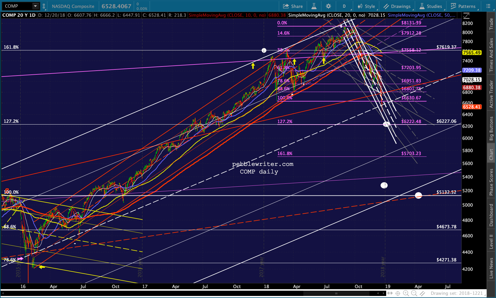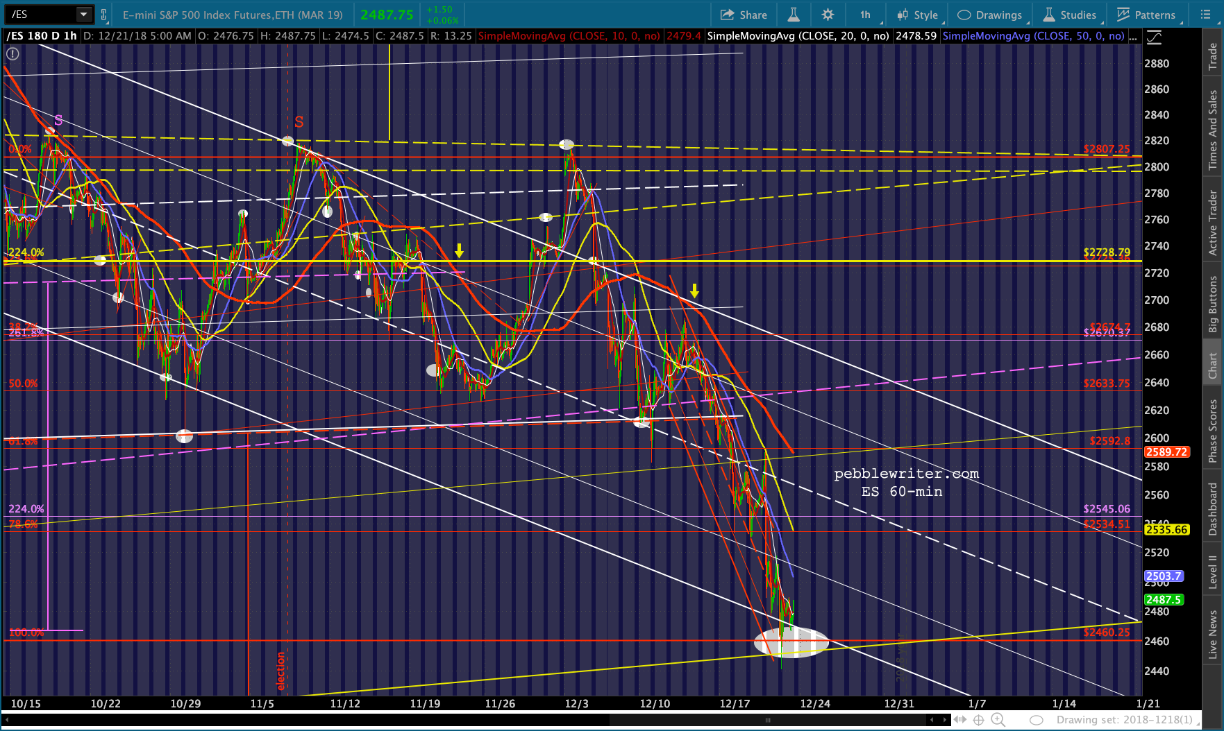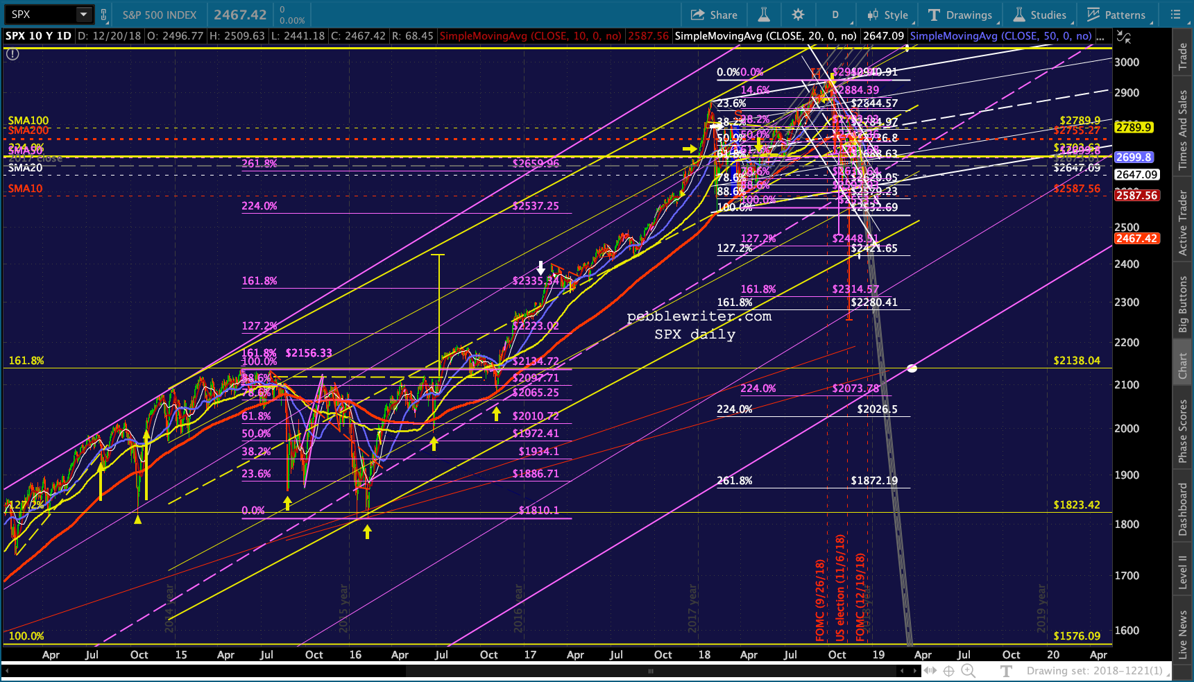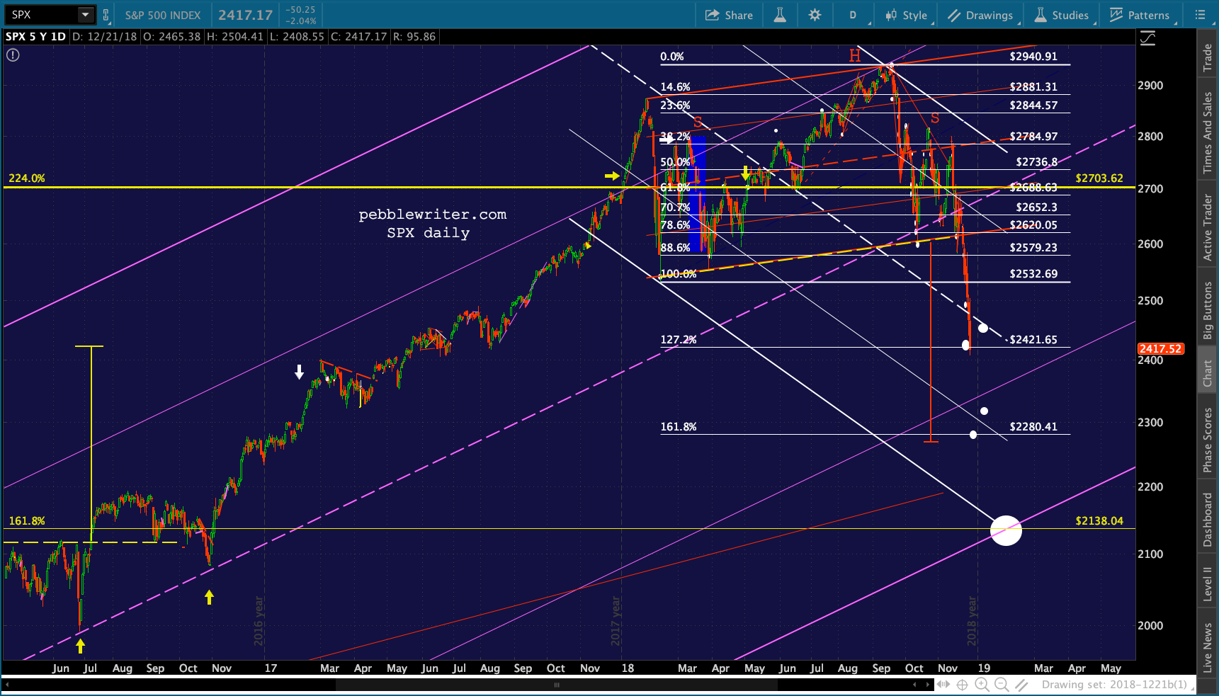 A close below 2421.65 increases the odds of the decline continuing next week without much of a bounce. But, it’s hard to know during a low-volume, holiday week. The white 1.272 isn’t a solid Butterfly target, only because the Oct 29 lows exceeded the .786 by 17 points or so.