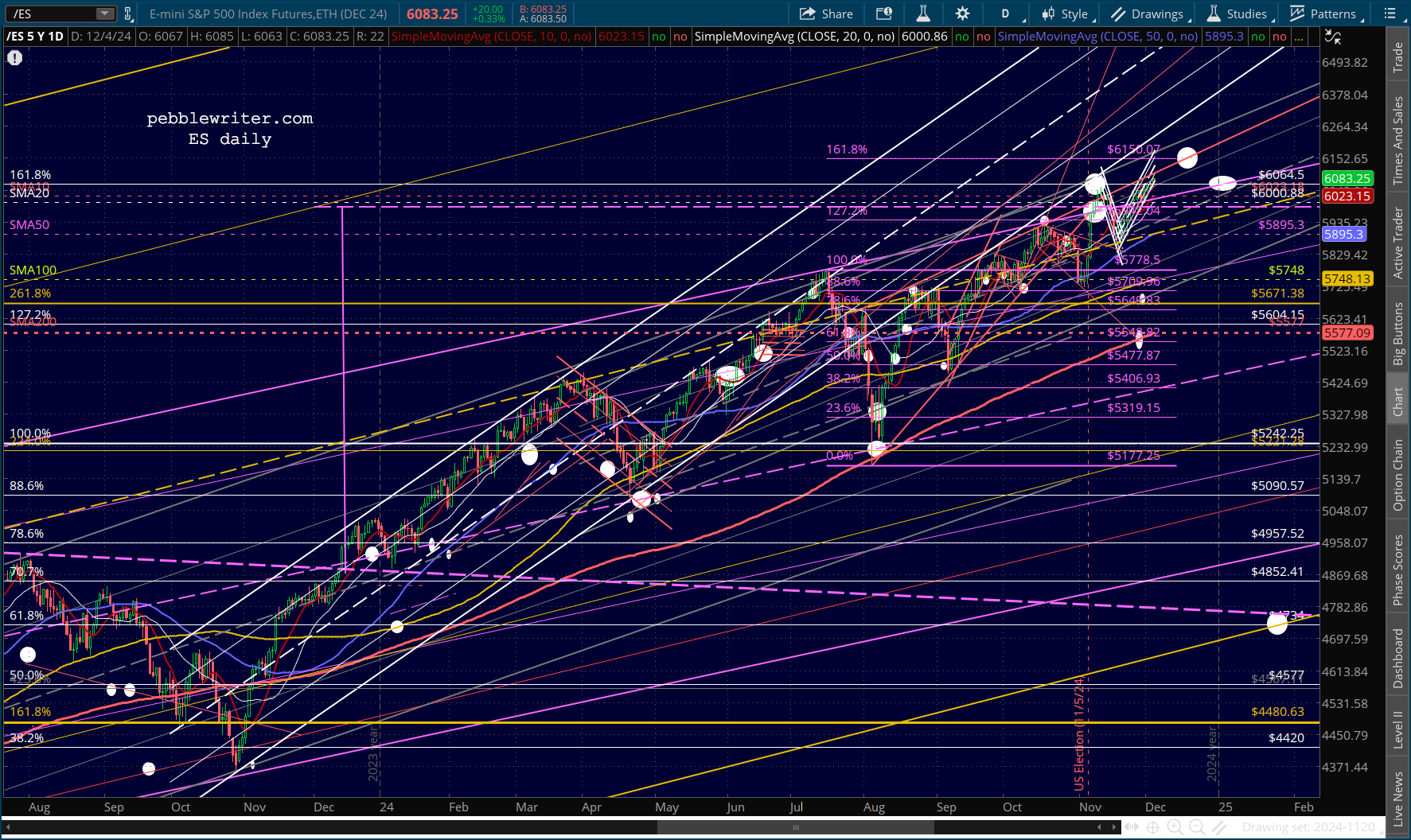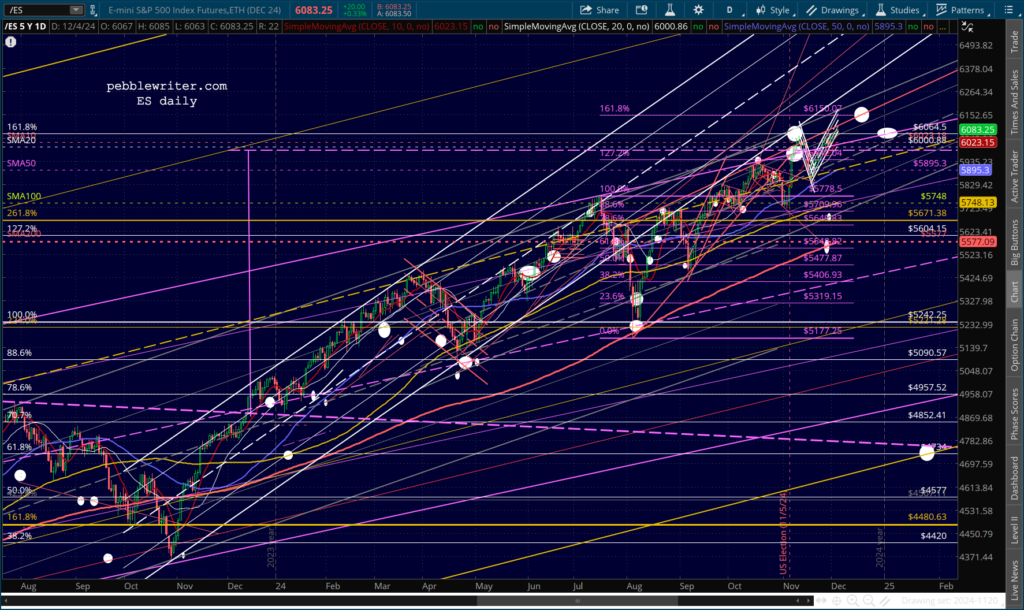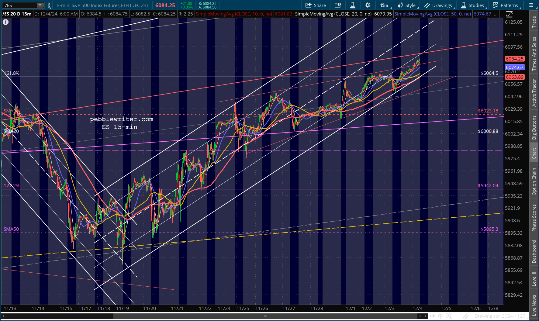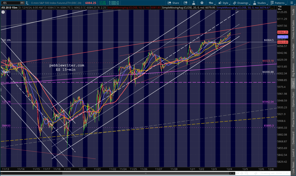 These developments have given ES a boost, enabling it to continue rallying past its 6064.50 1.618 Fib extension.