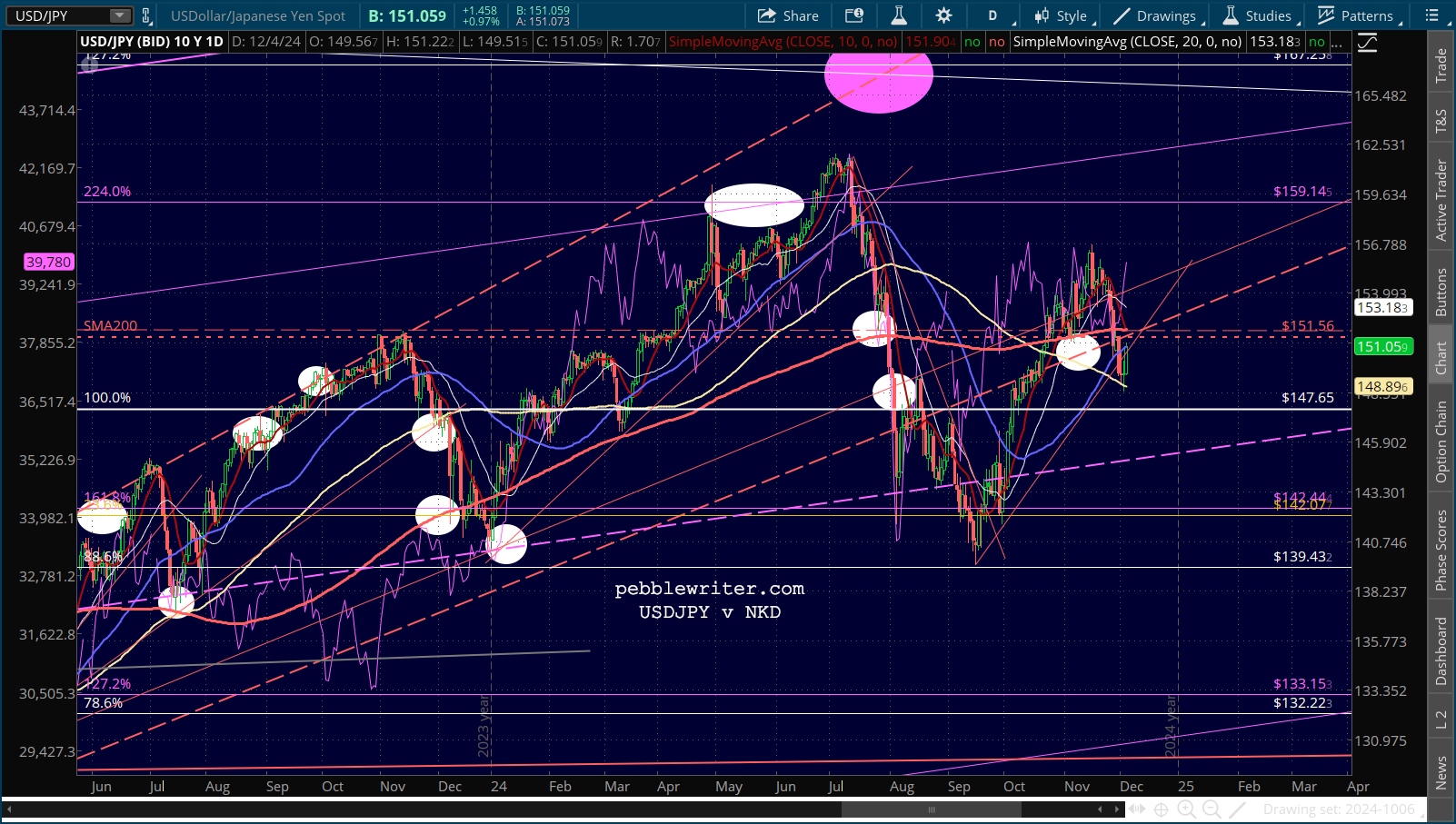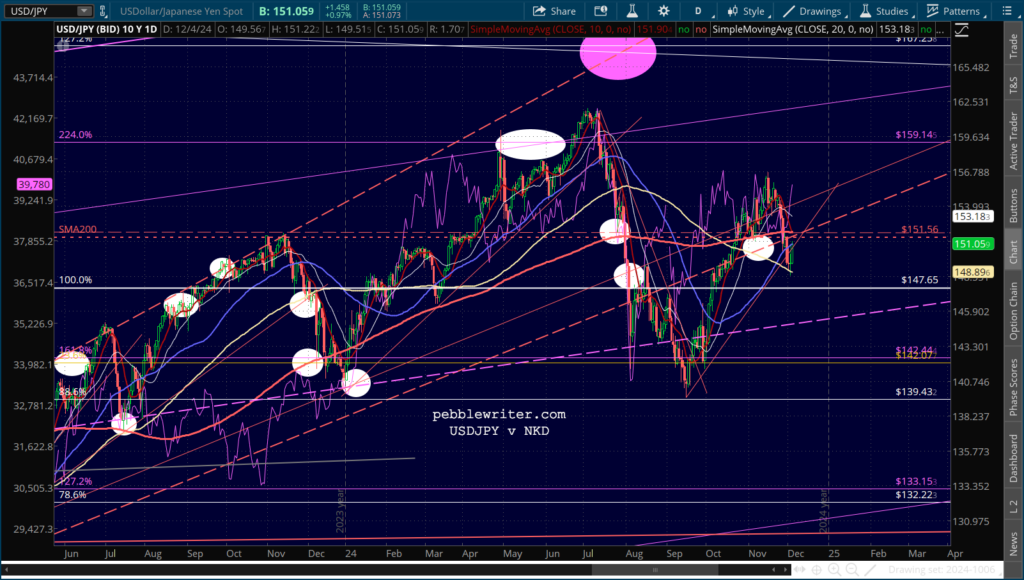 Yesterday’s potential currency emergency fizzled after South Korea President Yoon Suk Yeol’s declaration of martial law was struck down by legislators who are expected to impeach the president today. The USDJPY, which had initially dropped through support, rebounded nicely, pushing the Nikkei up through 200-day resistance…