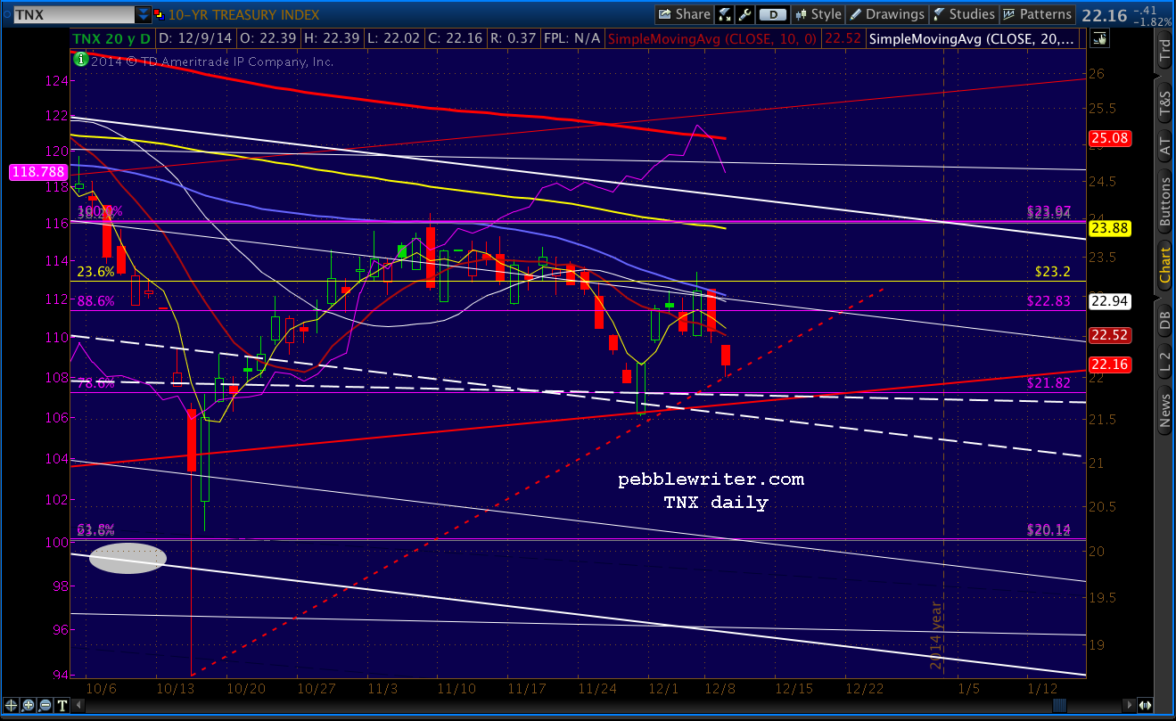 While the drop over the past two days was a bit unnerving, it fits with our expectation of a great deal of chop. Provided the tools mentioned above can remain in play, as I believe they will, SPX should still close at or near 2138-2142 around year-end.