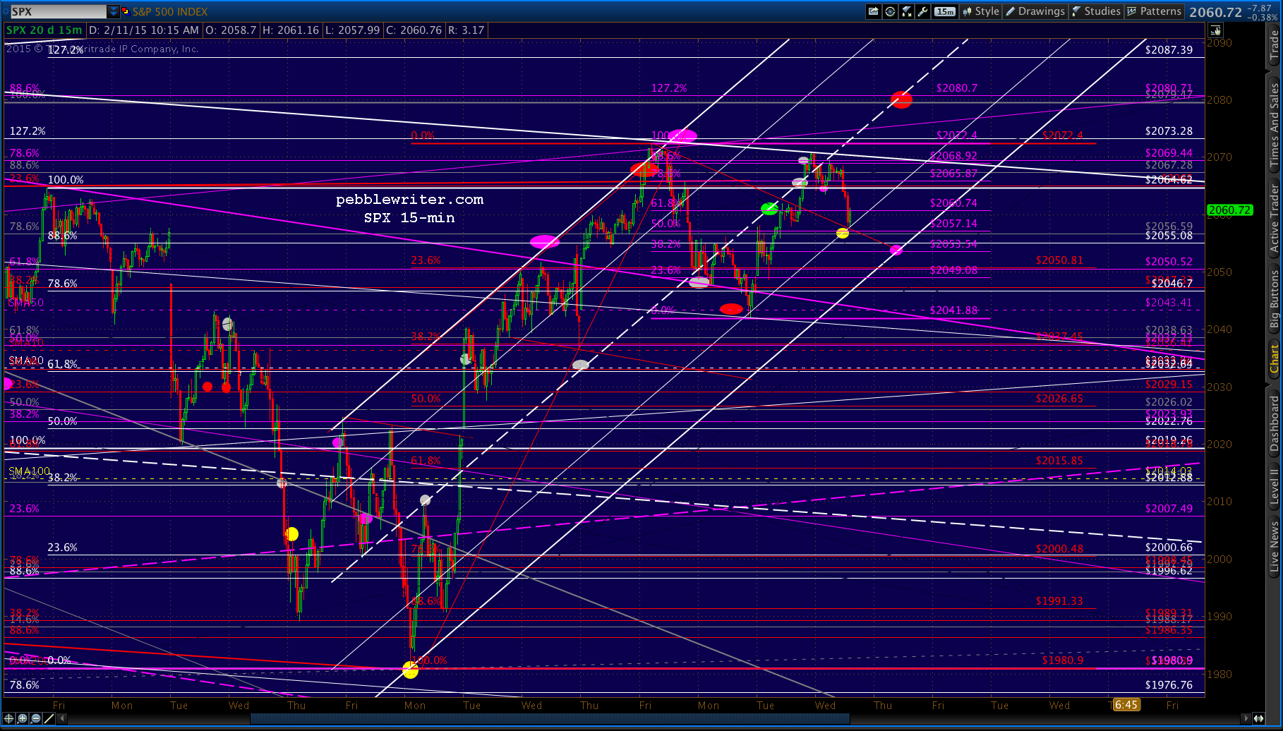 I’m looking for a pop in SPX to the purple .618 at 2060.74, after which we might see it retreat.