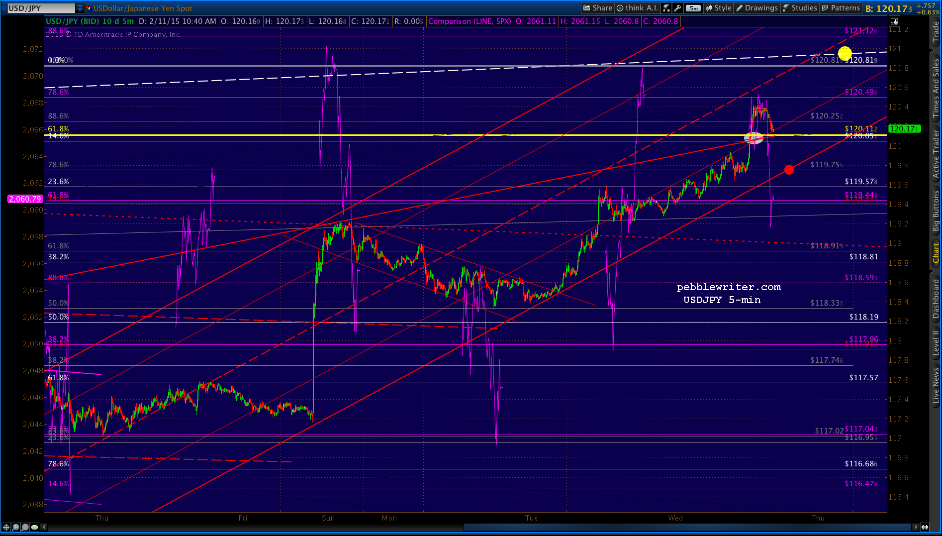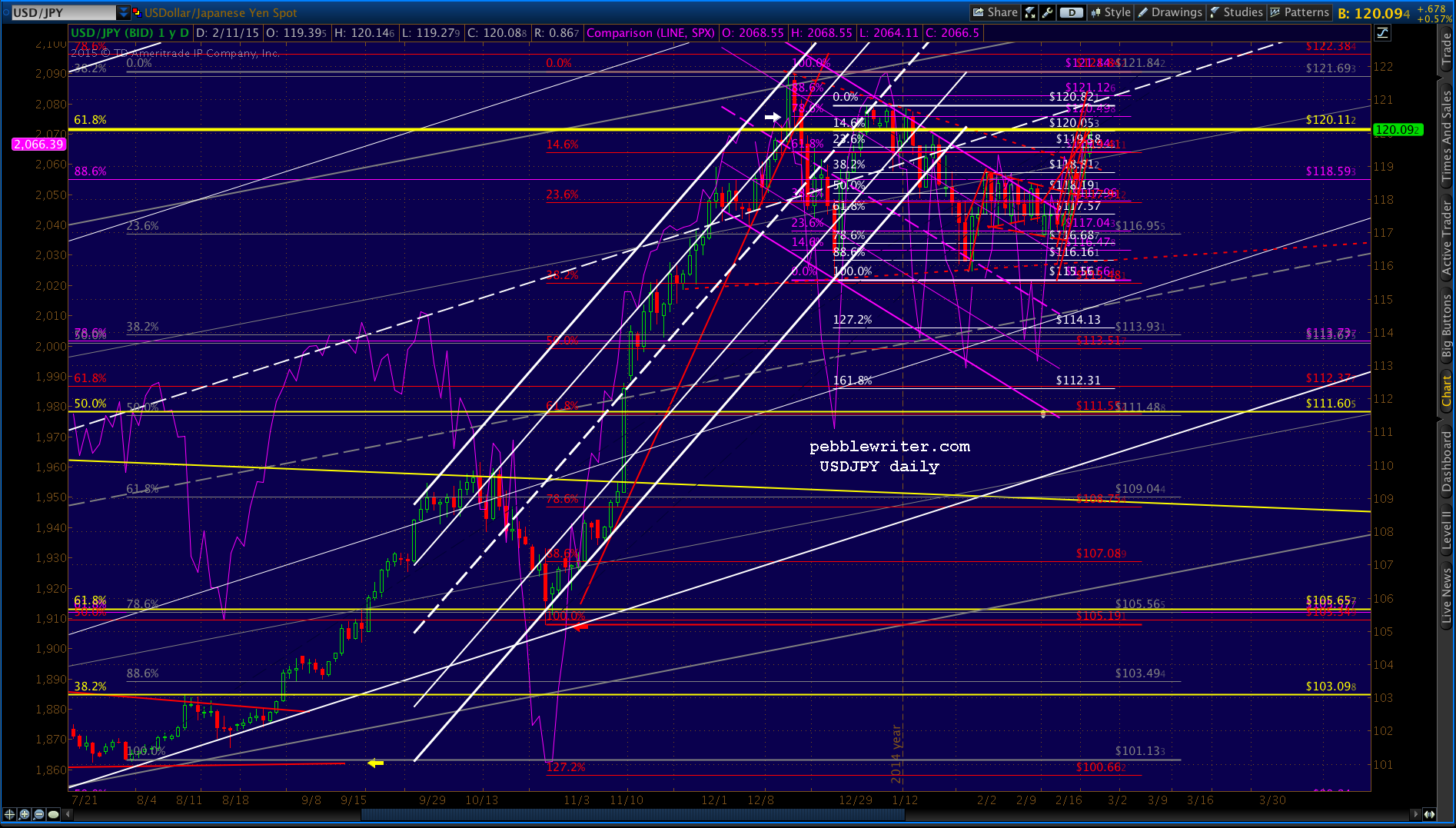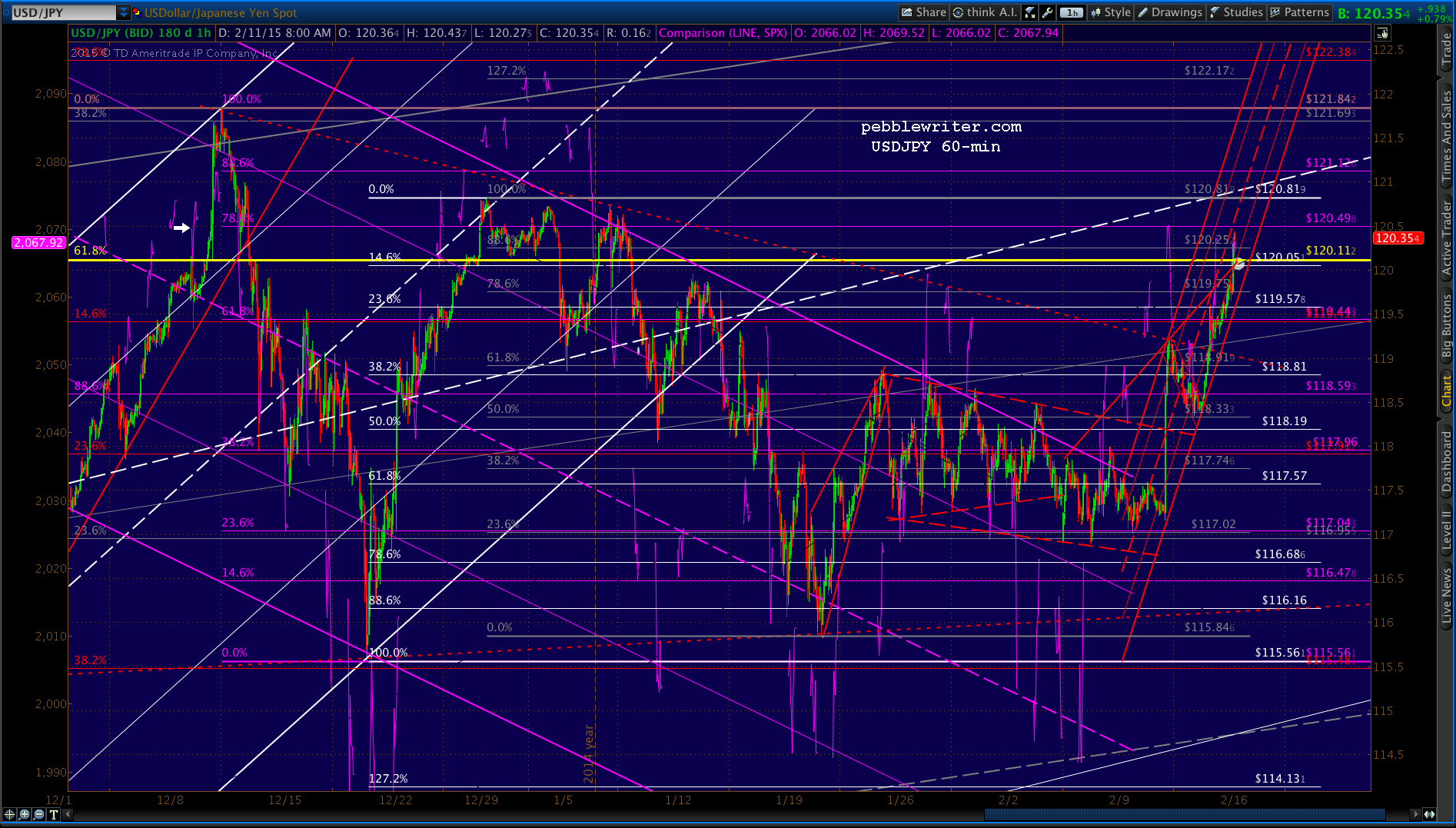 USDJPY did, indeed, pop through the .618. But, SPX is waiting to see if it’ll will go anywhere, or is another head fake as in late December/early January. SPX is currently off 1 point.