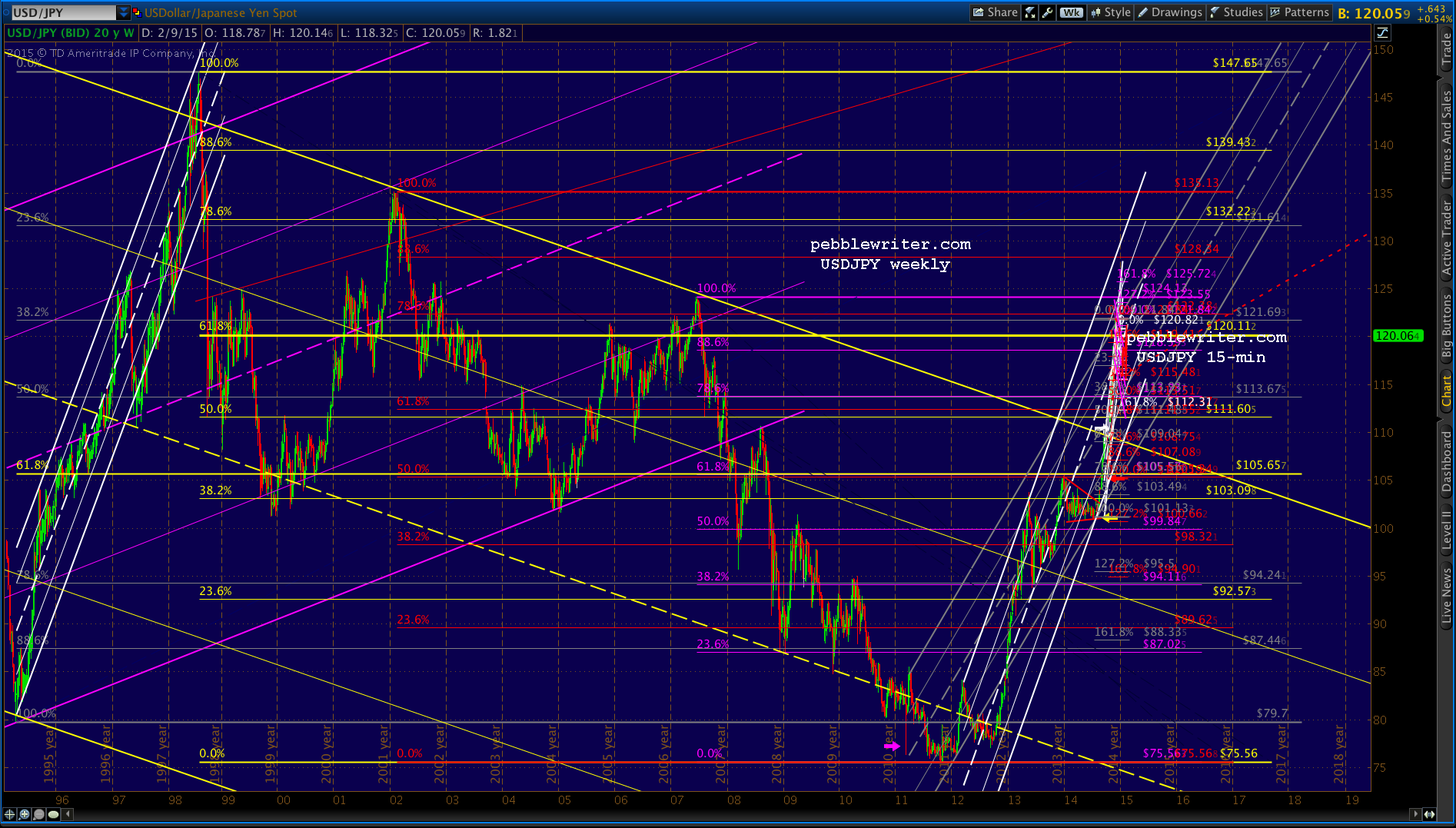 For newbs, and those who might have forgotten, 120.11 is the .618 retrace of the big drop from 147 to 75. It is quite literally the single most important Fib line on any chart one might be watching at this point in time.