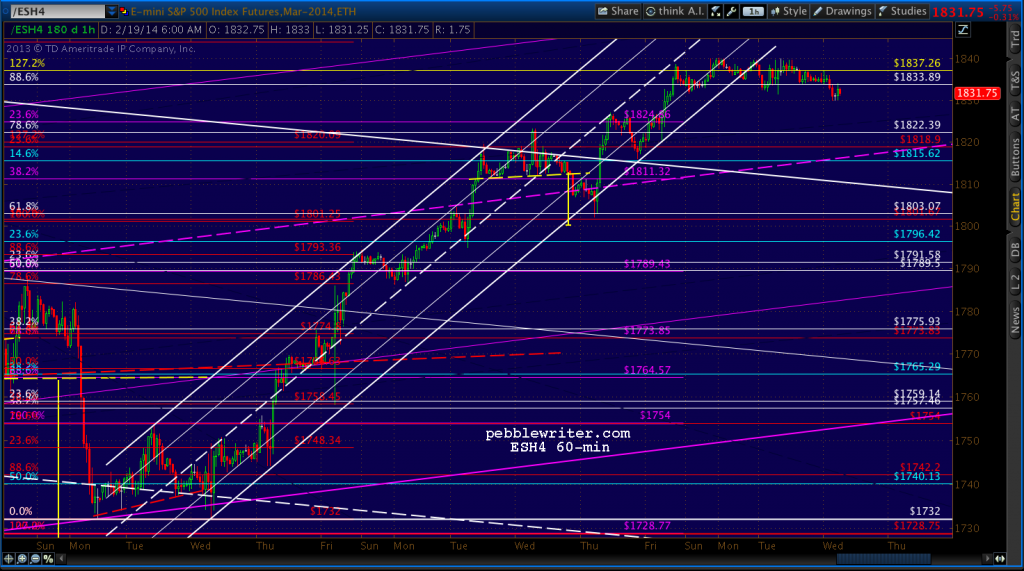 The e-minis, which already left the acceleration channel with yesterday’s water treading, appear to be rolling over. A break below 1830 would be a good start. But, let’s not discount the obvious intent to prop this sucker up. And, that’s where the headline news comes in.