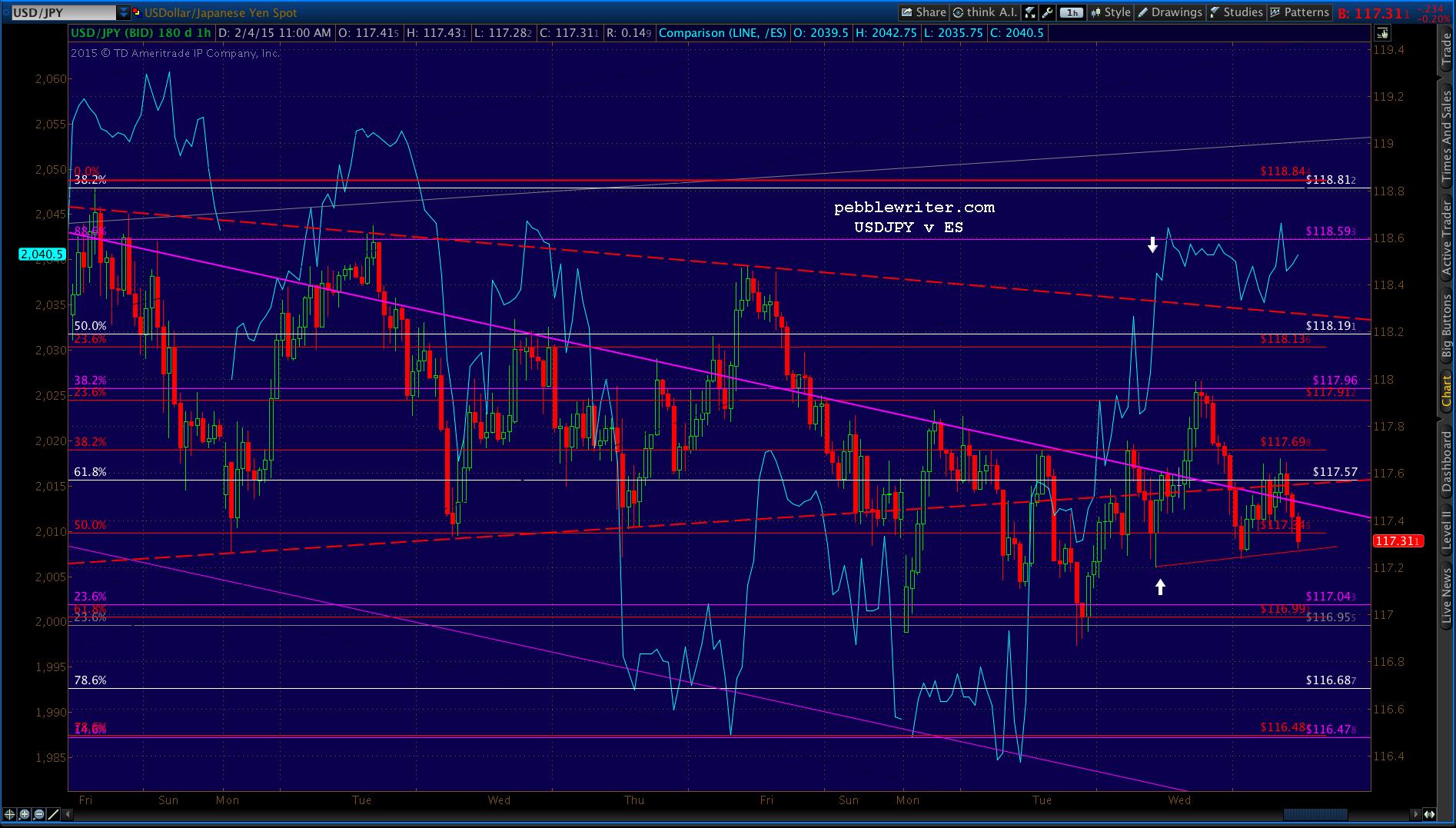 Look no further than USDJPY. A simple TL on the 60-min chart is all it takes.