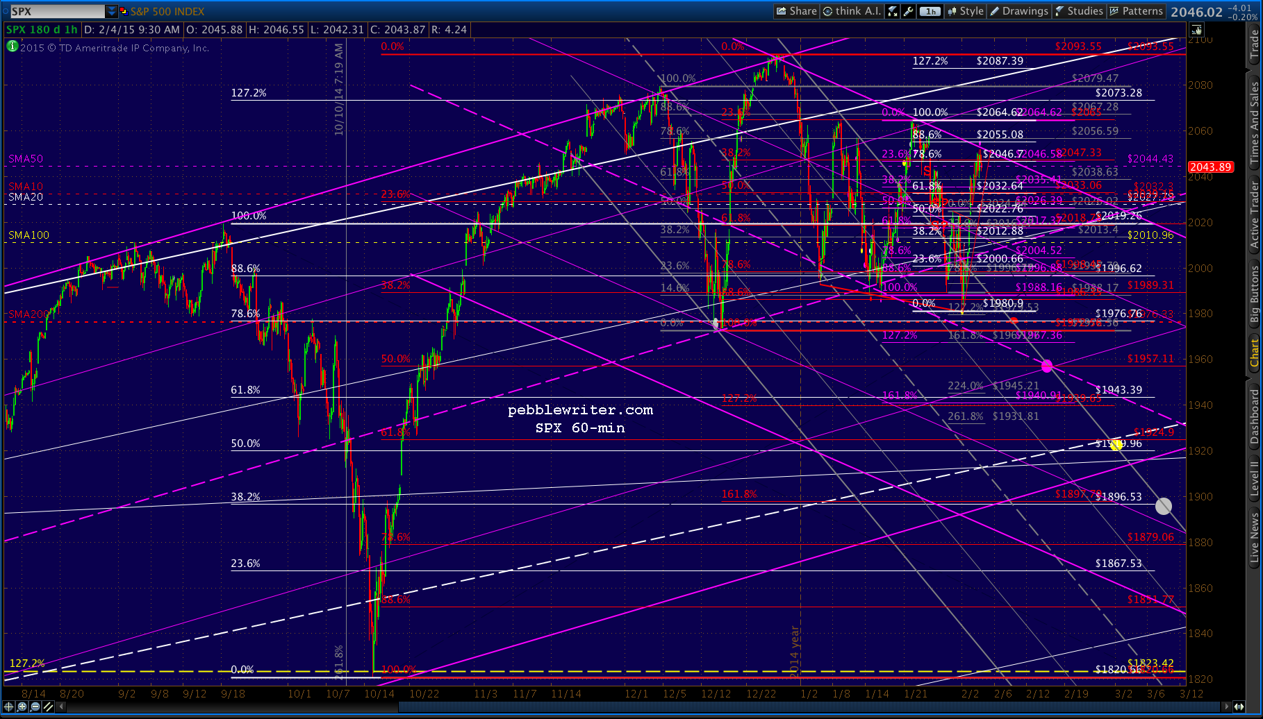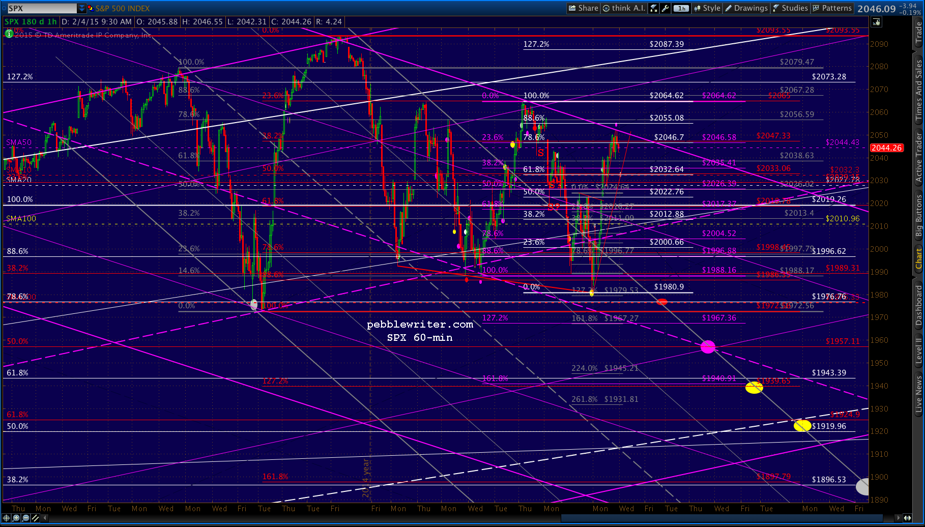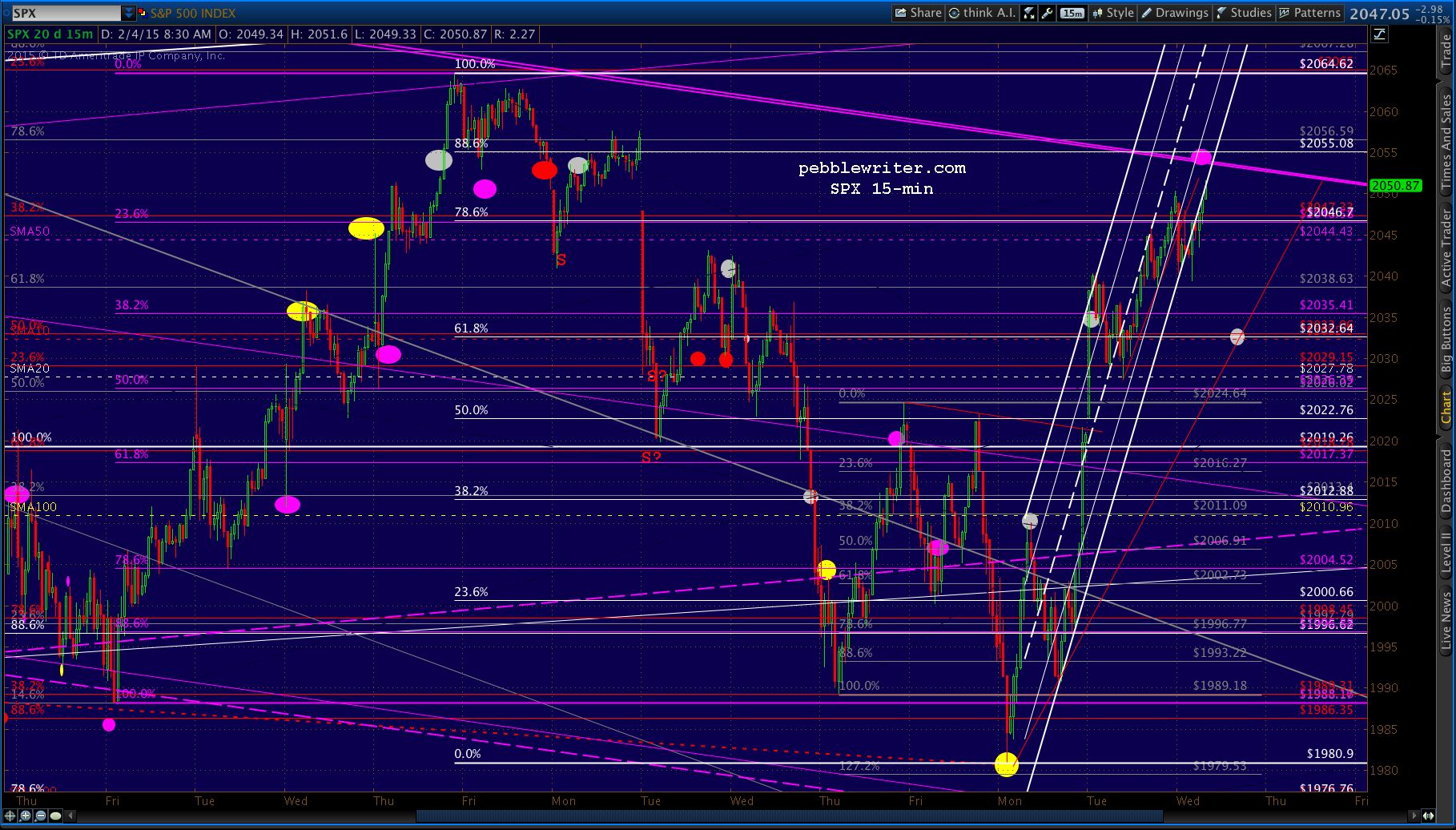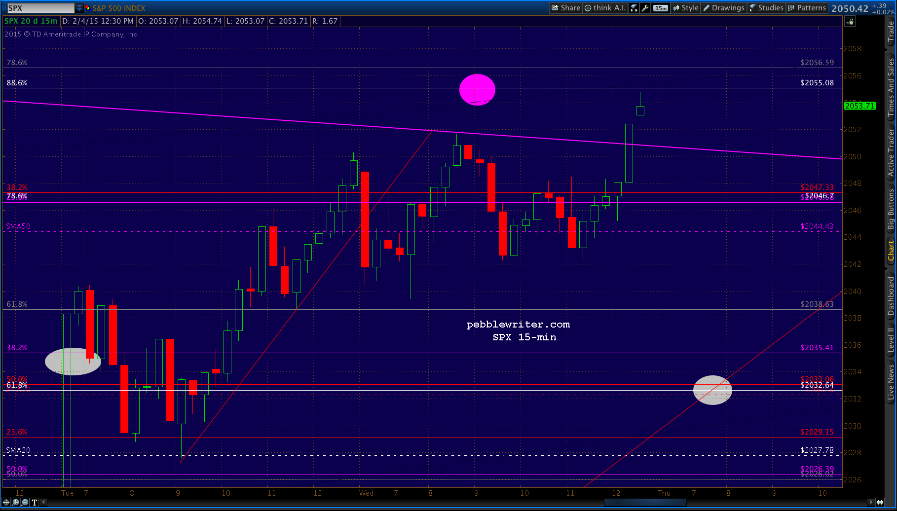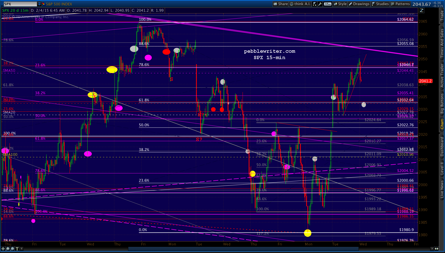 Just came to within .34 of the .886. It’s worth shorting here for the move to 2032, but only with tight stops in case they ramp it up overnight. As before, keep an eye on the SMA50 at 2044.