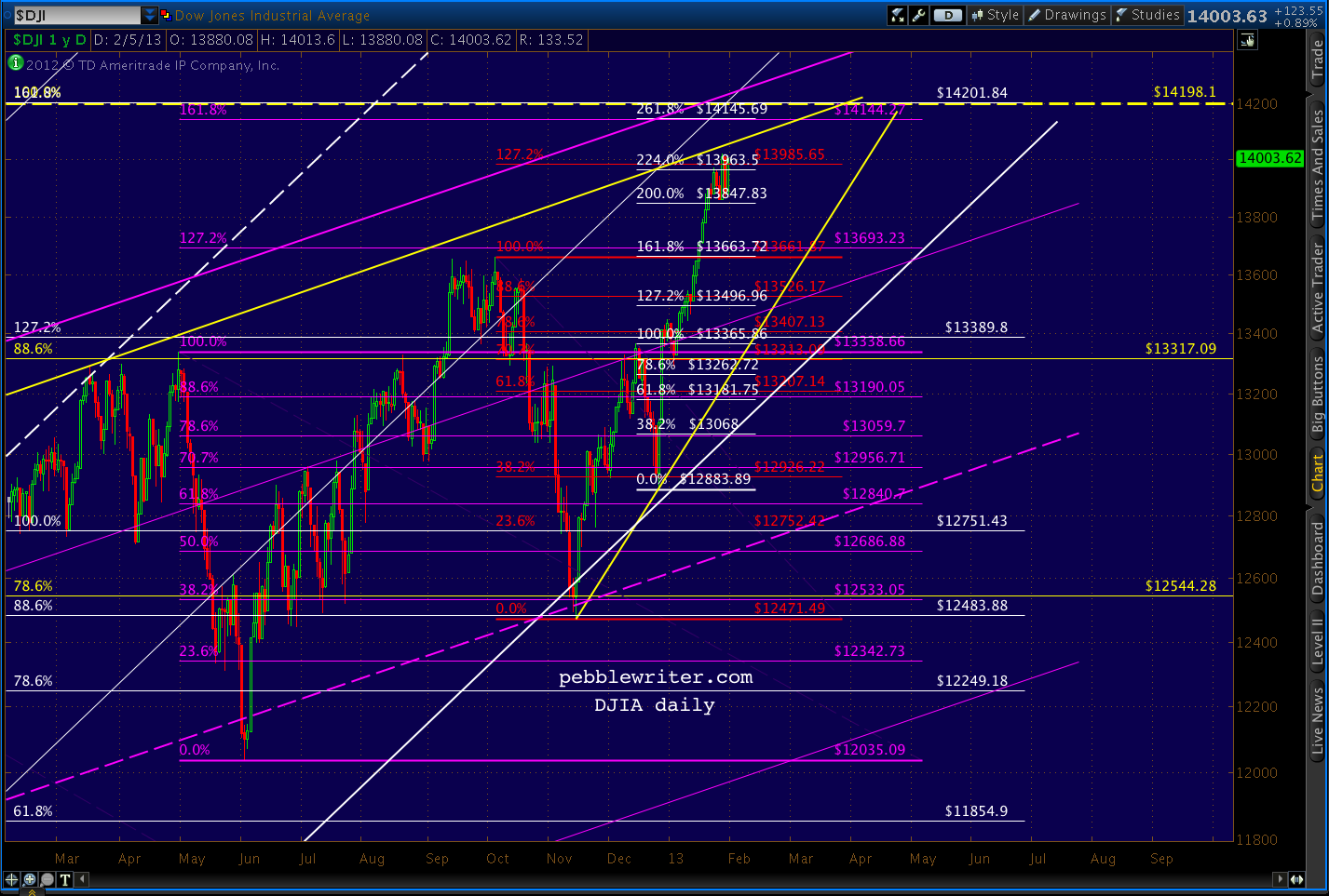 The other targets wedged in there include the purple 1.618 at 14,144.27, the small white 2.618 at 14,145.69, the larger white 1.618 at 14,201.84 and of course the double top at 14,198.10.