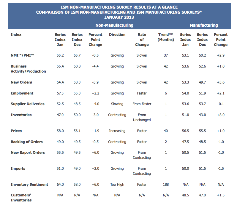 PMI down from 55.7 to 55.2 and versus consensus of 55.6. January’s numbers: