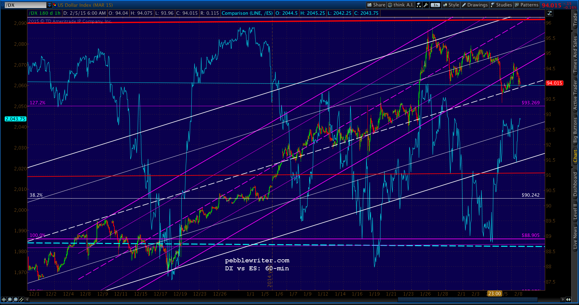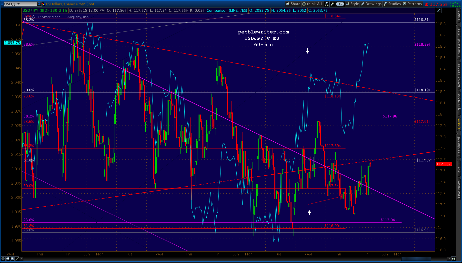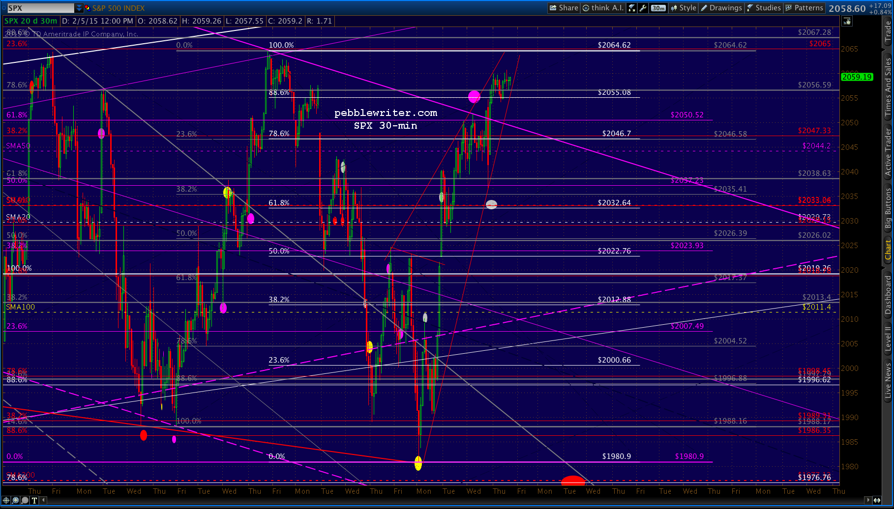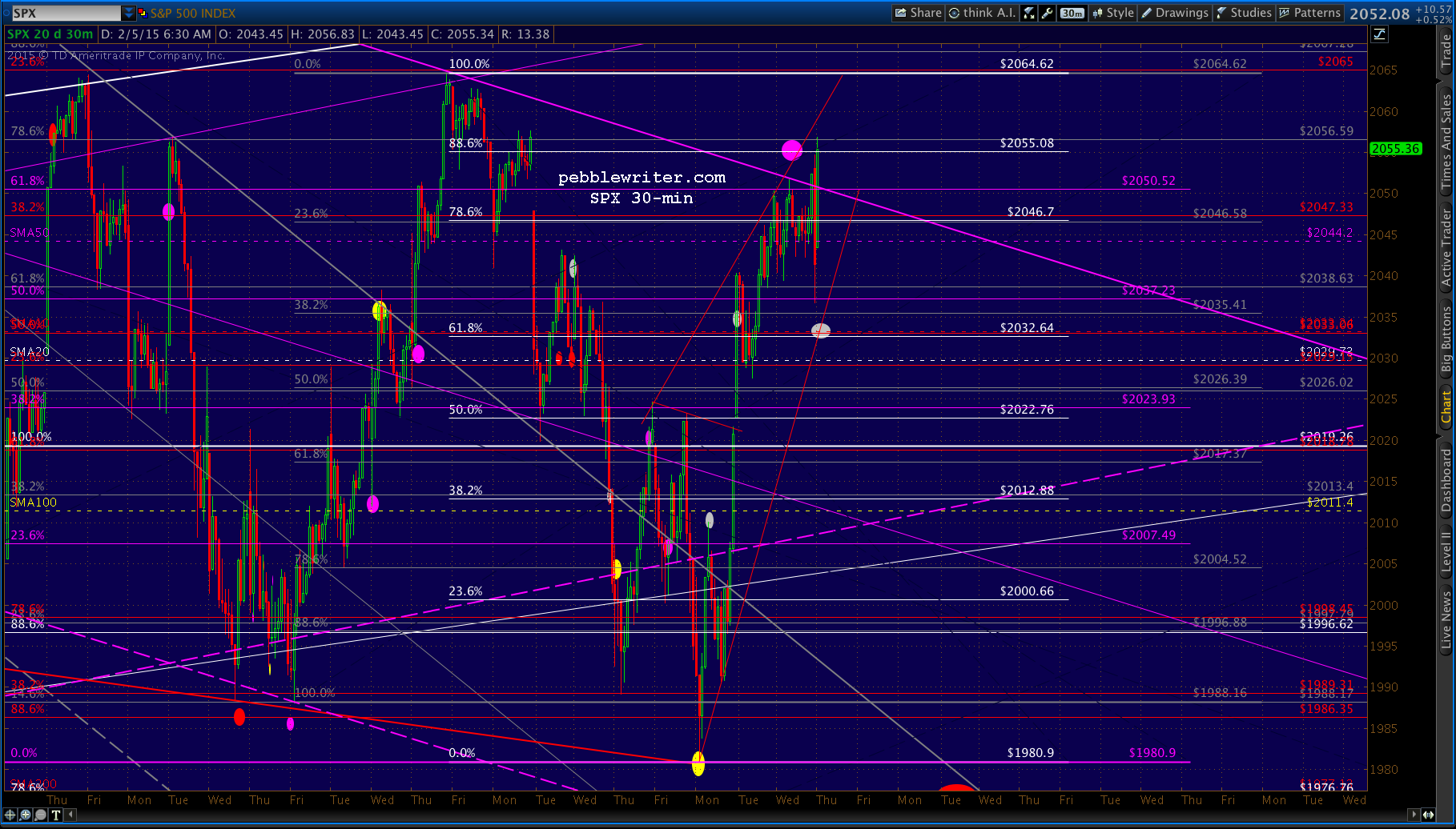 We expected a sell-off to the white .618/SMA10 combo at 2032 at that point. From the 3:37 update in yesterday’s members’ section: