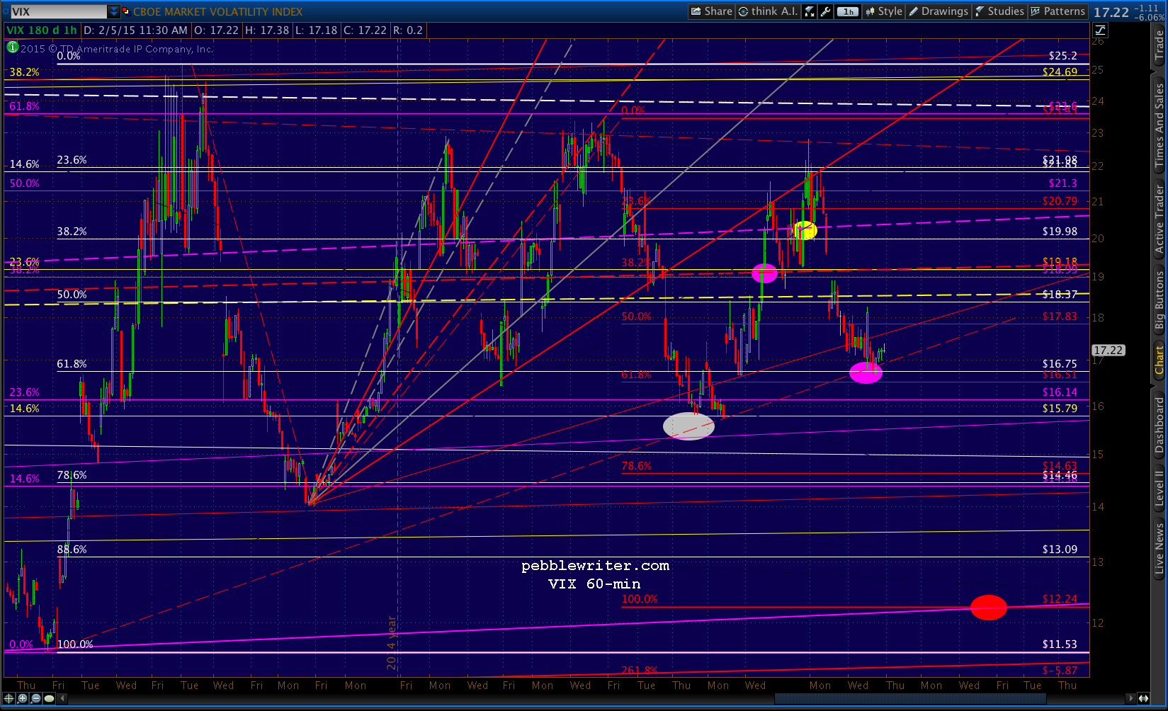 There’s the .886 tag. CL broke out of the red channel but is reversing; and, USDJPY is poking up above the purple channel top. VIX is back down to the red TL. We’ll see if there’s any follow-through.