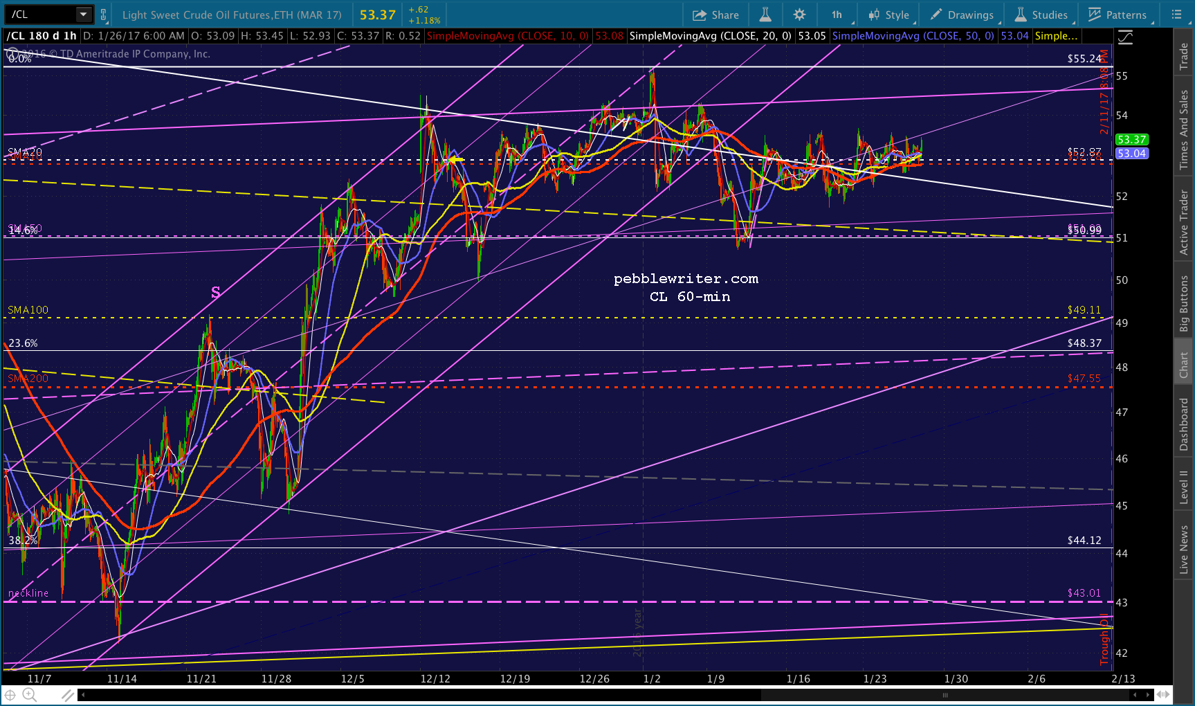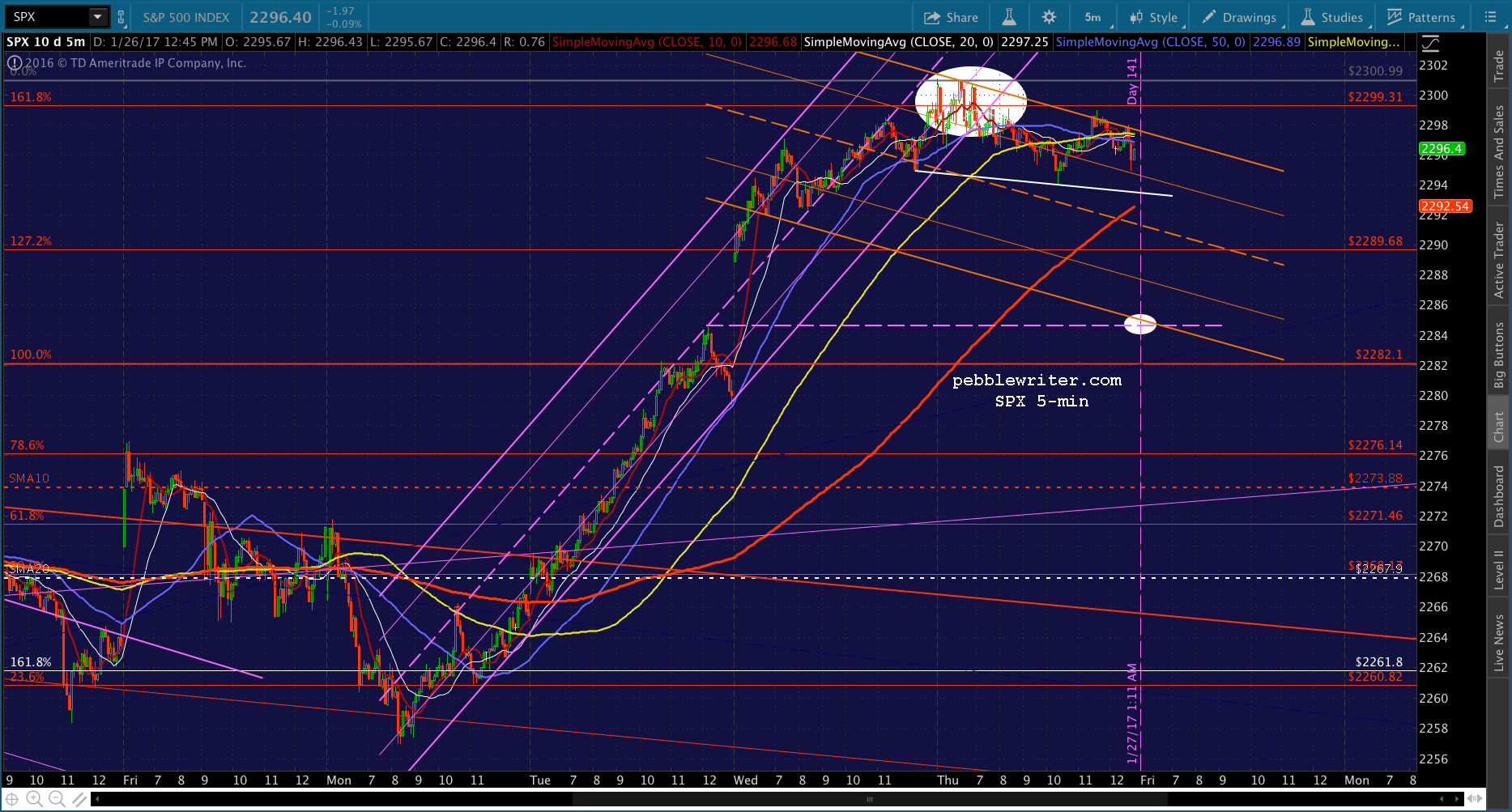 The futures are currently flat. As mentioned last night, SPX has reached a small-scale Fib 1.618 extension at 2299.31 which would put a damper on things ahead of the idealized Jan 27 (ideal) interim high.