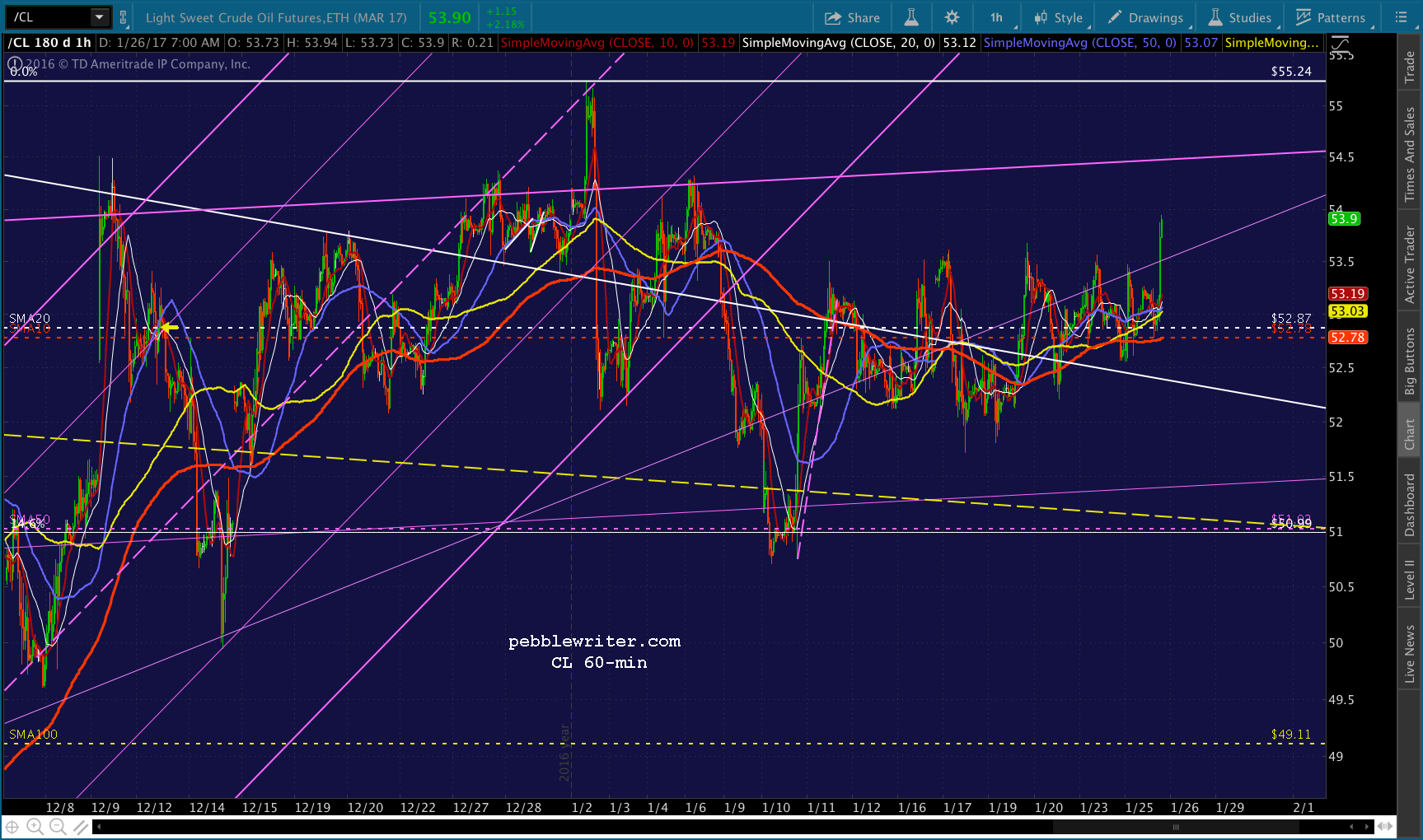 There’s a gap to fill at 2284.63, which would make a nice downside target if we can stay in the red. The SMA10 is at 2273.88 and rising, which would serve as a secondary target. Obviously, a sustained push through 2300 would be good enough reason to switch to long for the ride to 2330ish.