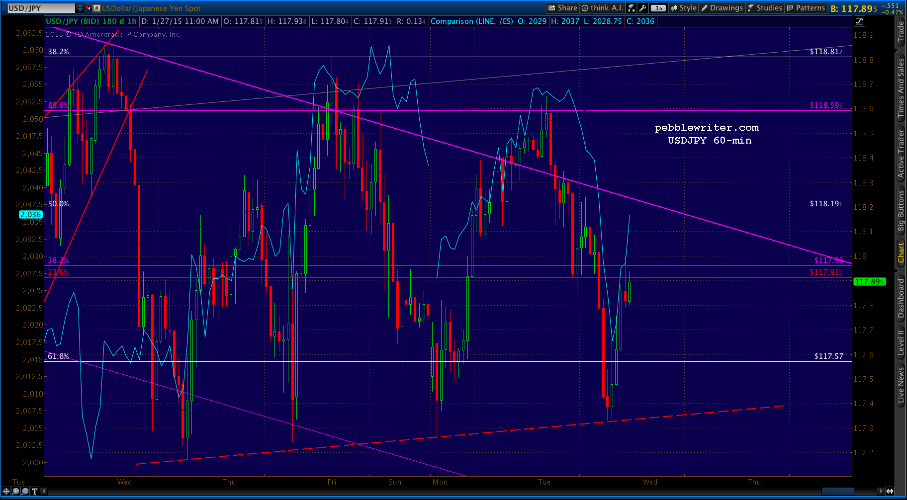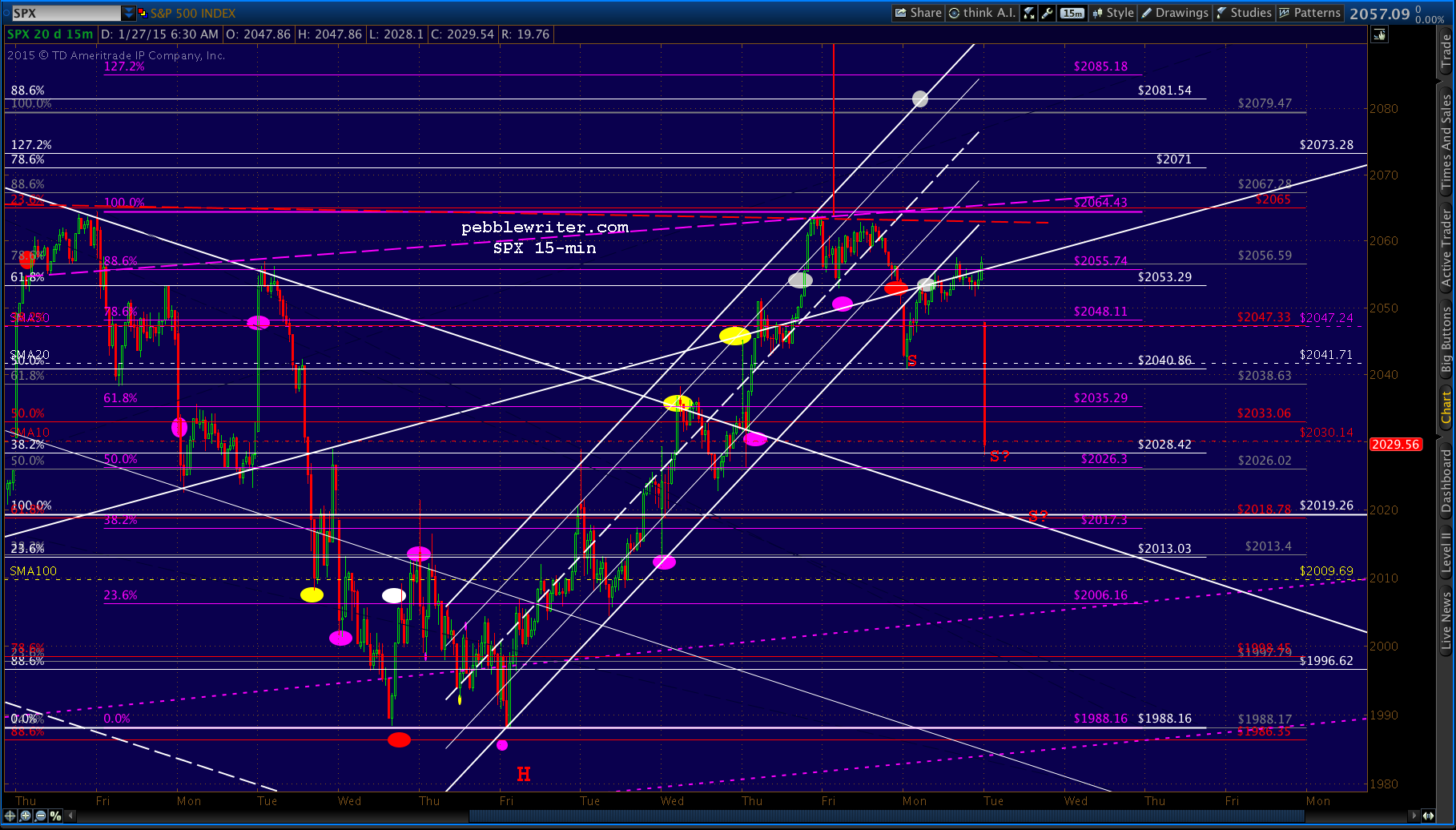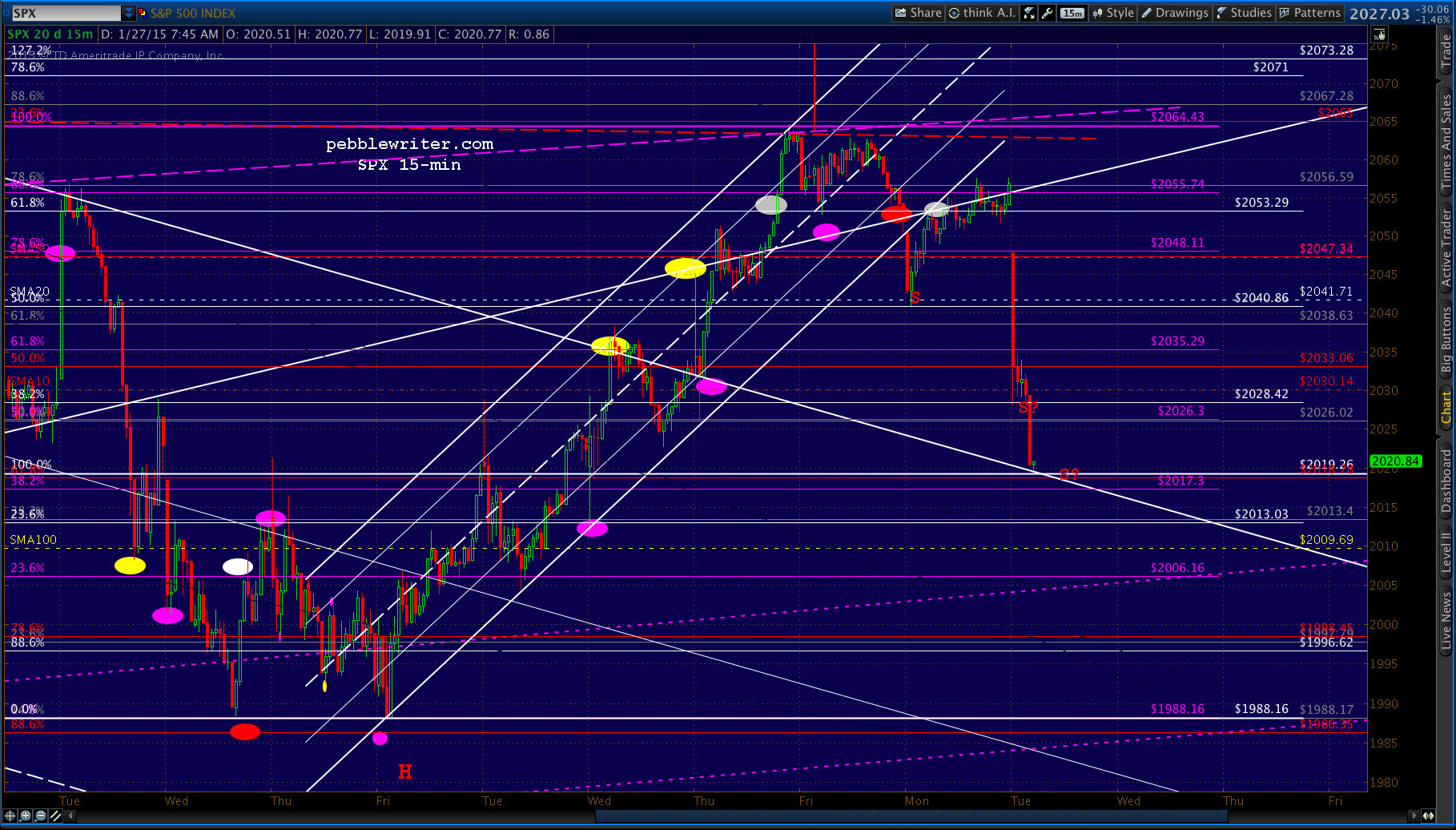 If our lower target is reached, the ideal time would be around 2pm EST. It’s worth noting that the SMA100 is coming back into view — currently at 2010, so not much lower than our 2017 target.