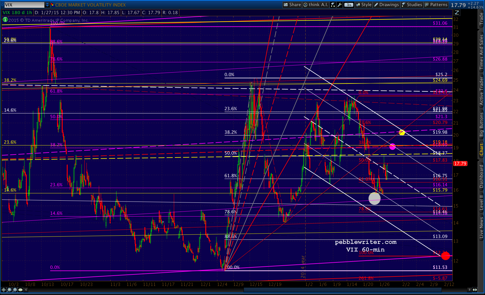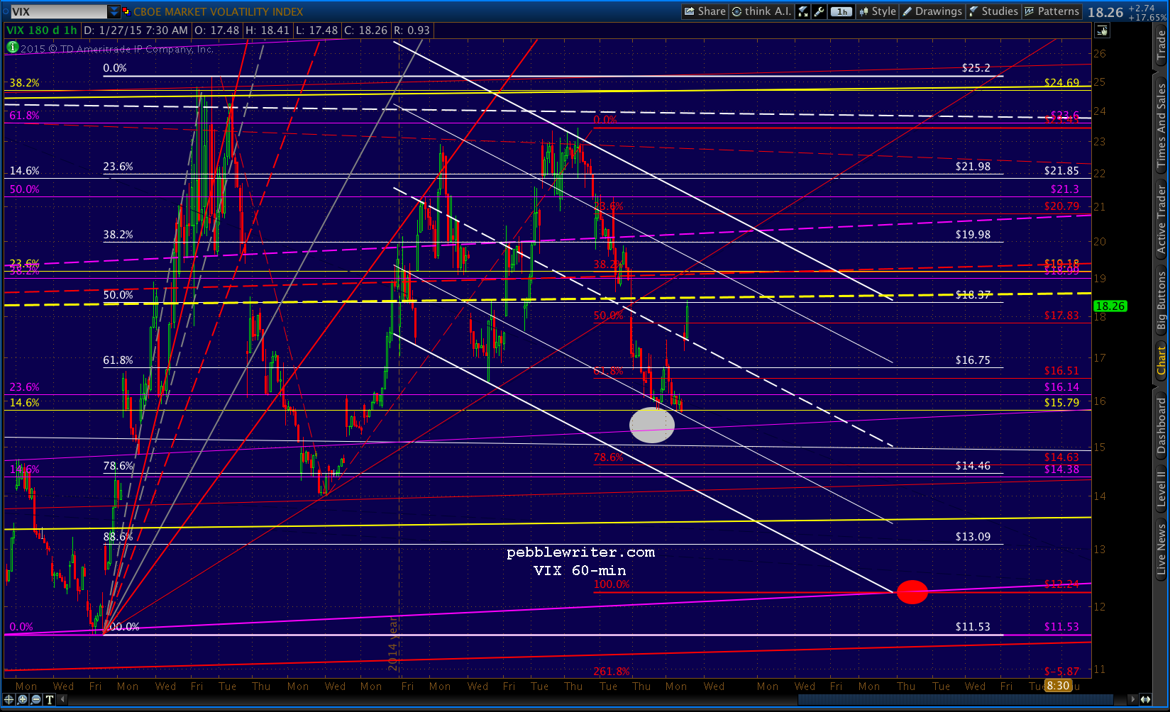 Note that VIX has backtested the yellow channel midline we charted last week.