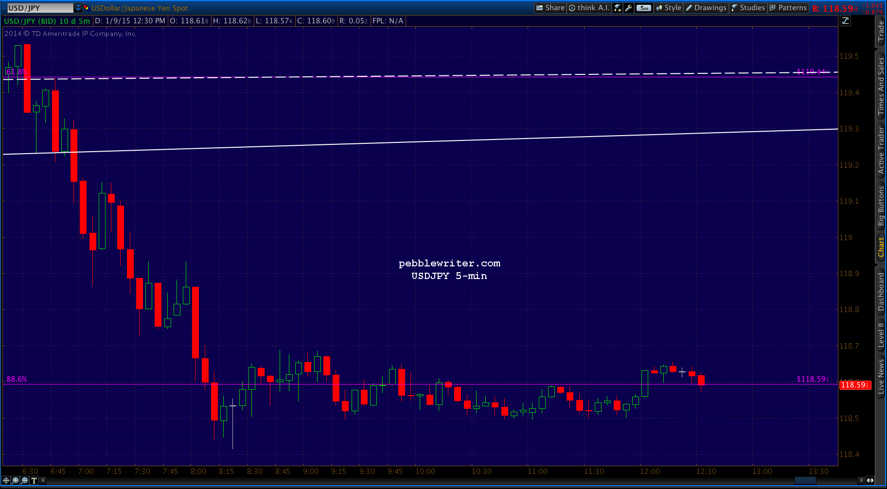 I suspect the sell-off in the last hour has been all about legitimizing the rising purple channel within the larger white channel. But, the red channel is a factor to contend with until USDJPY breaks out — if it’s going to.