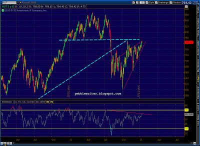 Re DX and bonds, I still see us completing the flag — at least. That means 87+ on DX. Check out the AUDUSD chart I just put up. Speaks volumes about the divergence that's being "engineered." Also, RUT vs COMP.