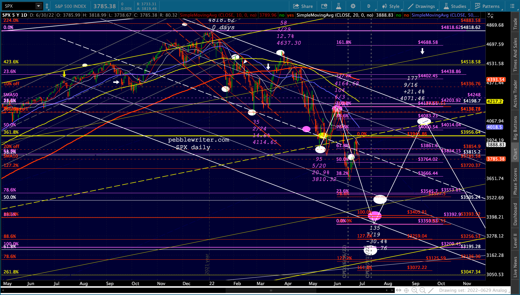 continued for members…If SPX is to land around 3350 by the 19th, that would mean around 40 points per day between now and then. Of course, it is quite unlikely to be a steady drop. Past corrections have seen markets alternating between small rallies and huge plunges.