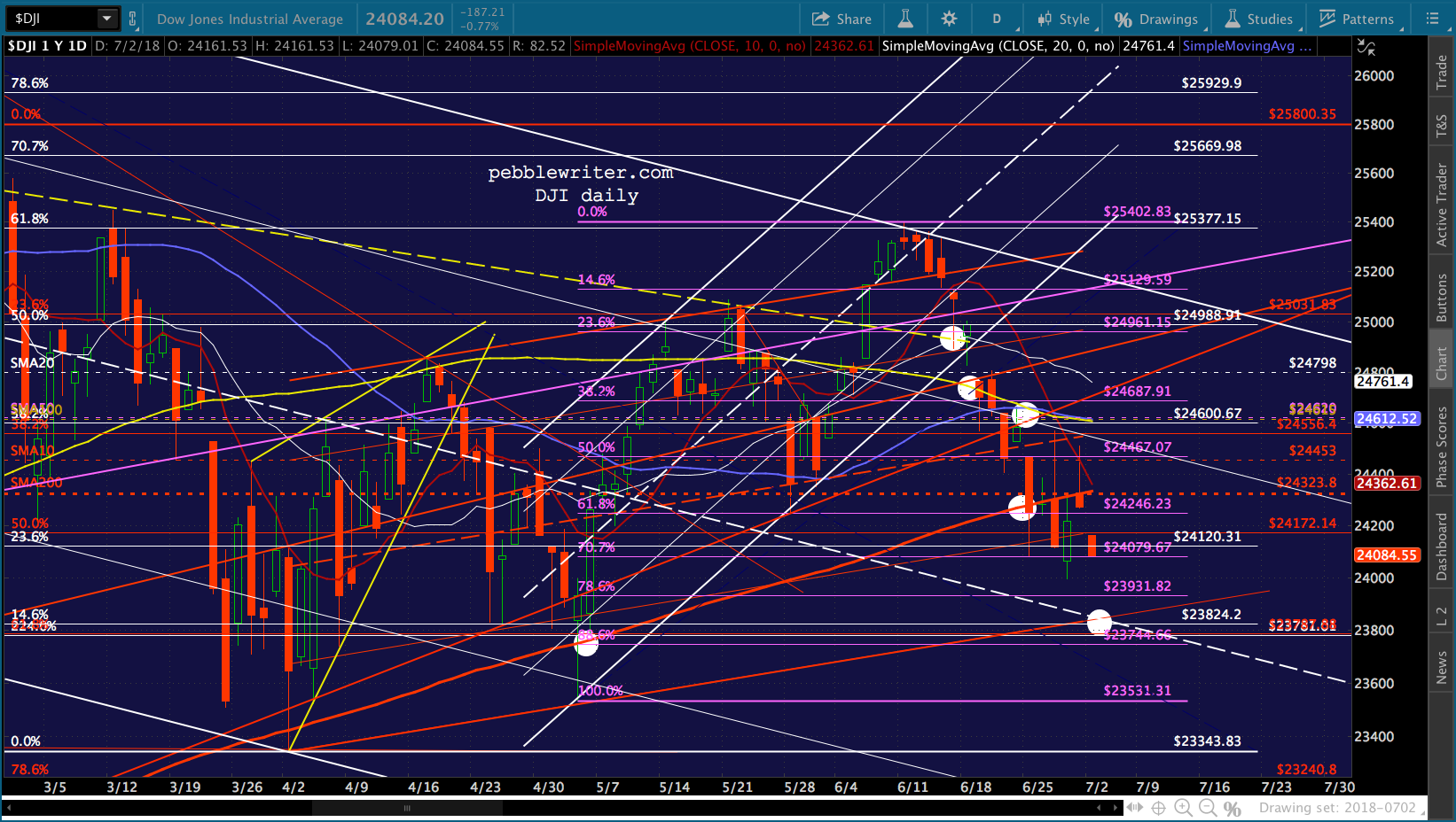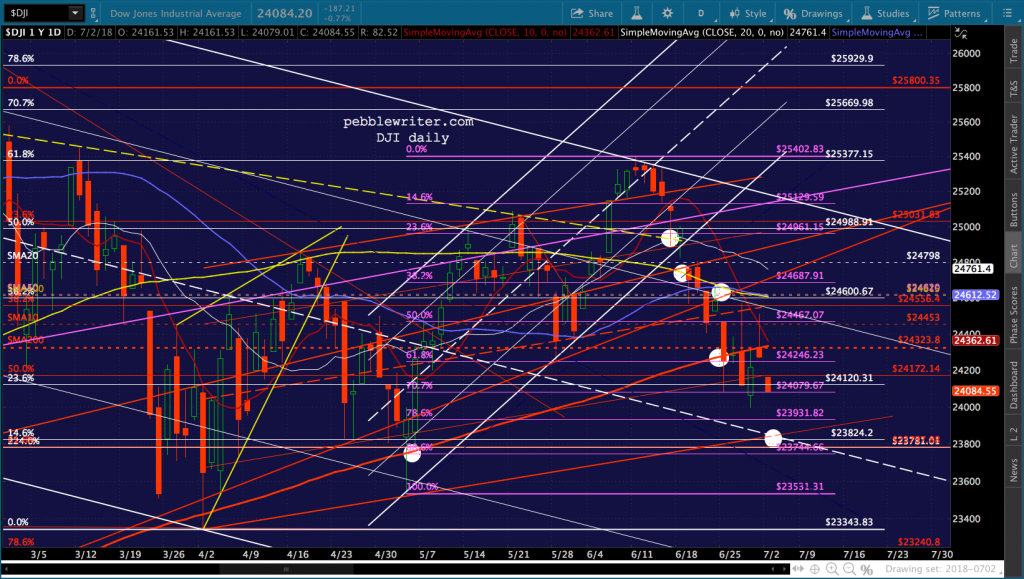 DJI continued its streak on Friday — 5 closes below the SMA200. Today should be number 6. DJI bounced off its SMA200 on Apr 2 and May 3. Before that, the last time it even tagged it was on Jun 28, 2016.