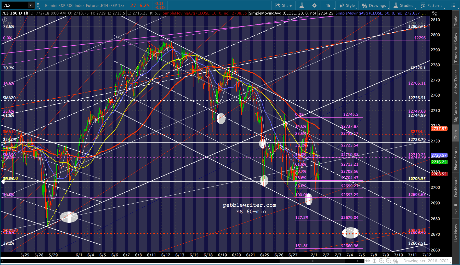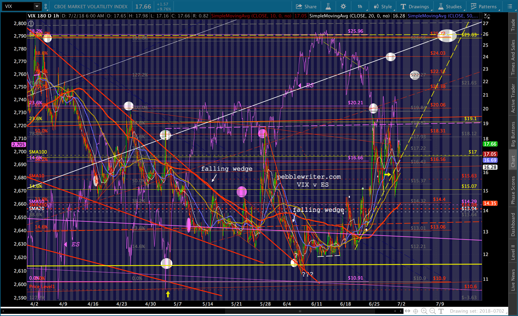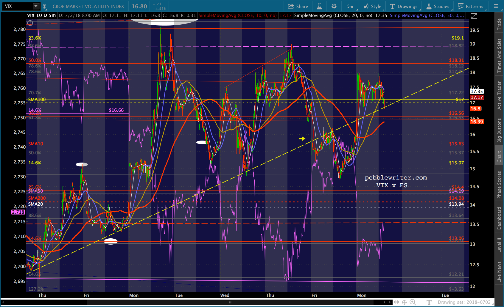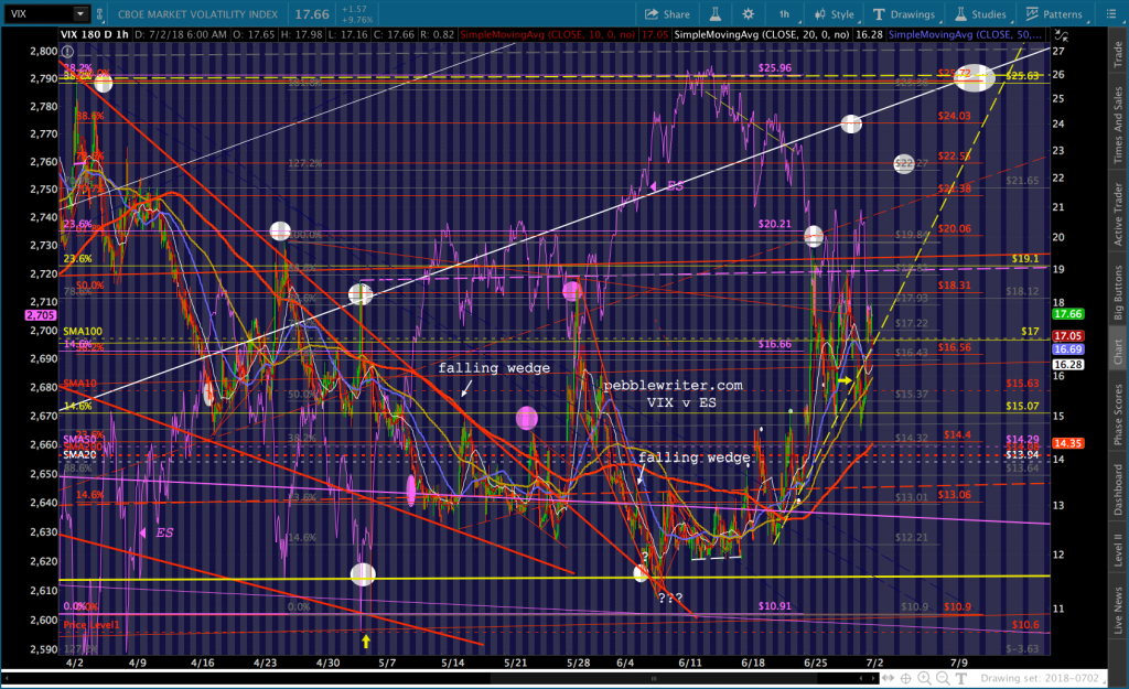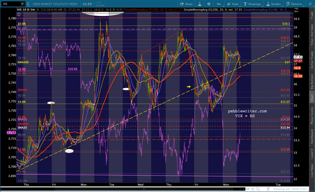 The last time VIX broke the yellow TL, ES got a very nice bounce. This is an important line in the sand for VIX. I suspect that this is a delaying tactic and it will hold. If it doesn’t, I suspect the SMA5-200 will.