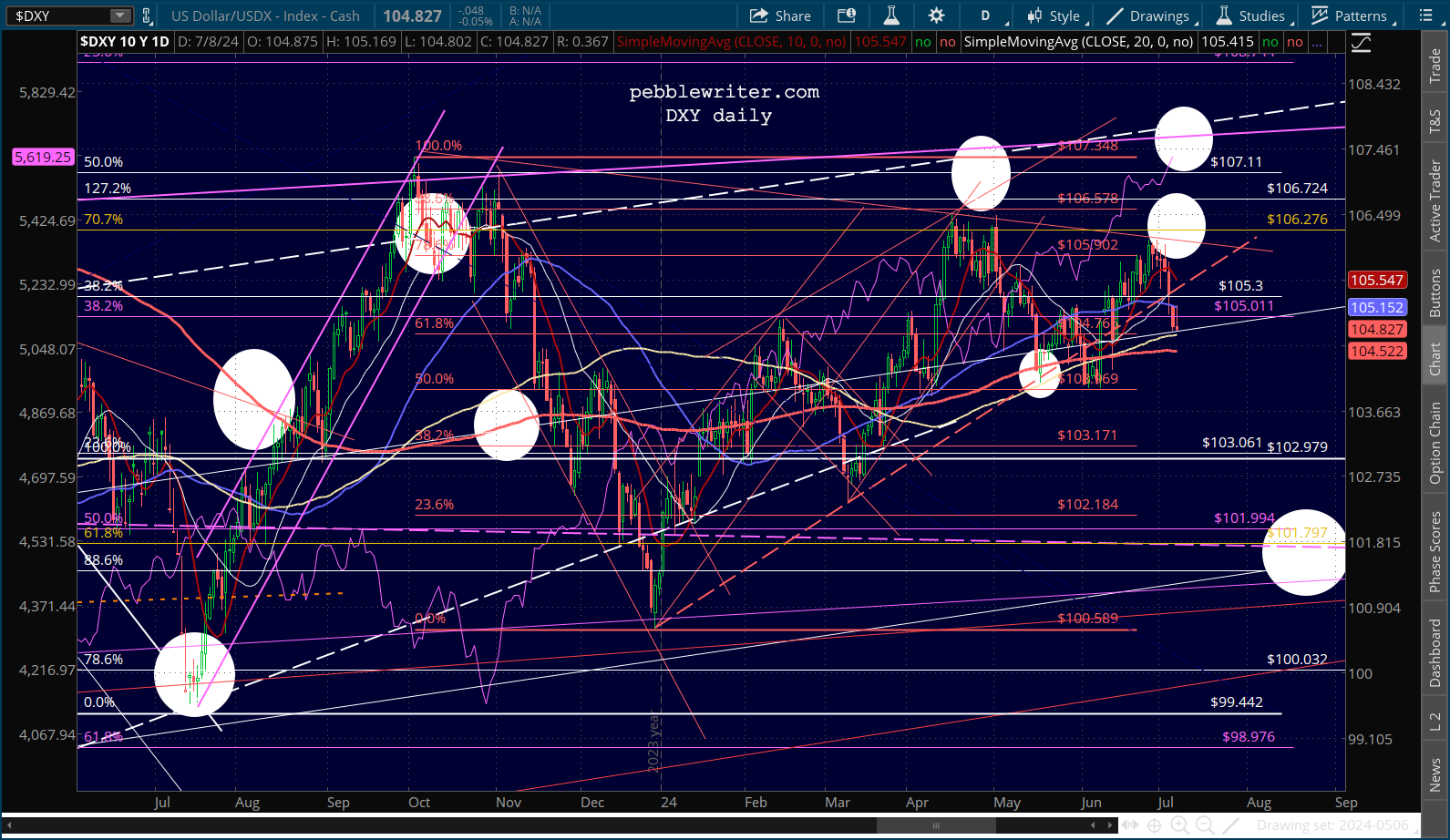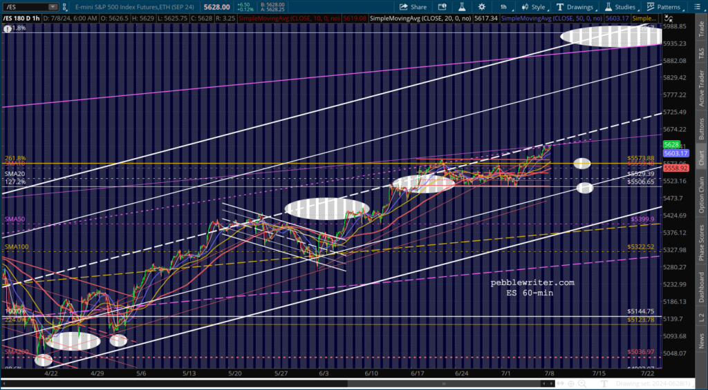 I wish there was something more dramatic to highlight, but this is basically just a continuation of last week – meltups alternating with modest backtests. In this case, any backtest should be limited to the significant Fibs ES just topped.
