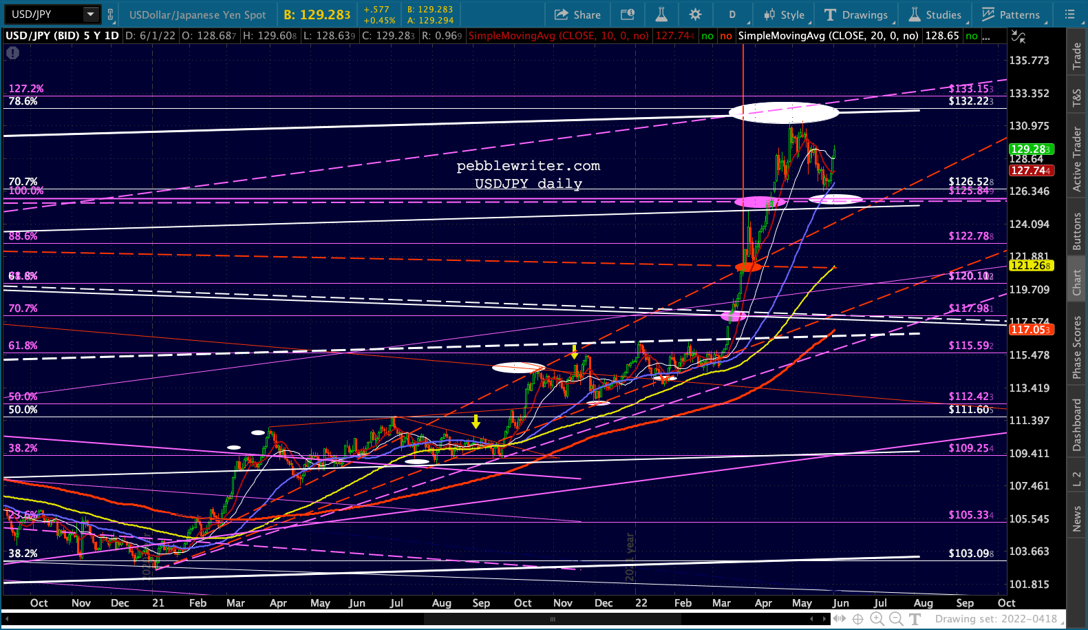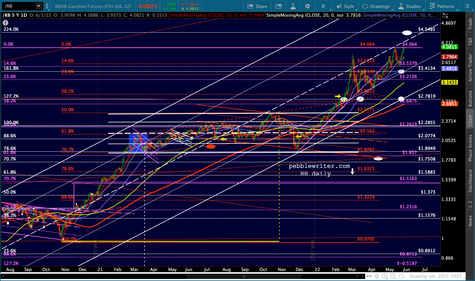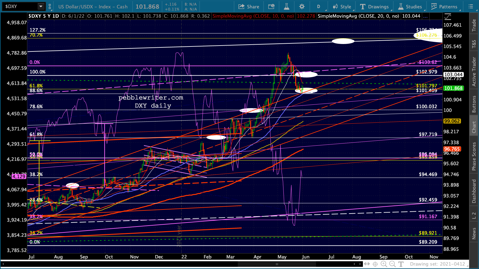 I’ve made a few adjustments in the EURUSD chart, reflecting a drop to 1.0173 and possibly 1.0071 by mid-July and subsequent bounce to flesh out the top of the red channel into September before crashing below par into year end.