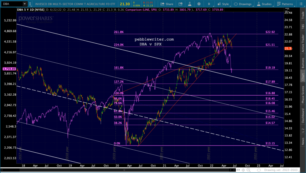 Meanwhile, anyone notice that DBA – the ag commodites ETF – has broken down below trend?