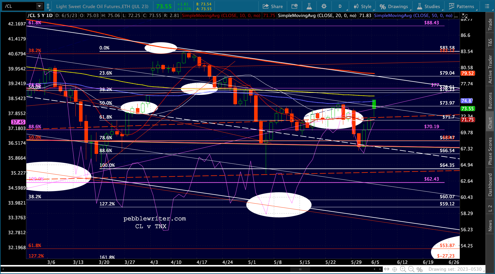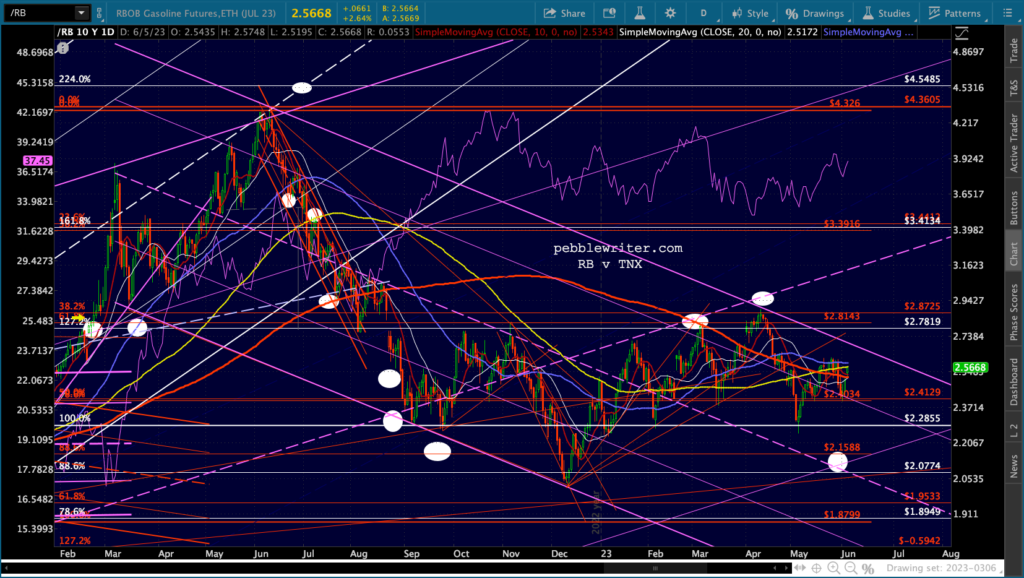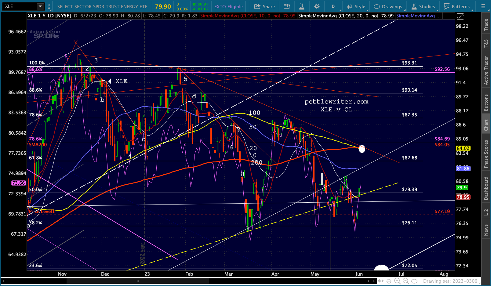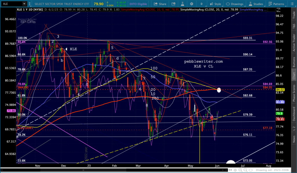 In other words, this is another effort to prop up prices in the face of questionable fundamentals. CL, RB and XLE face important tests at their SMA50s. And, importantly, XLE has recovered to back above its neckline.