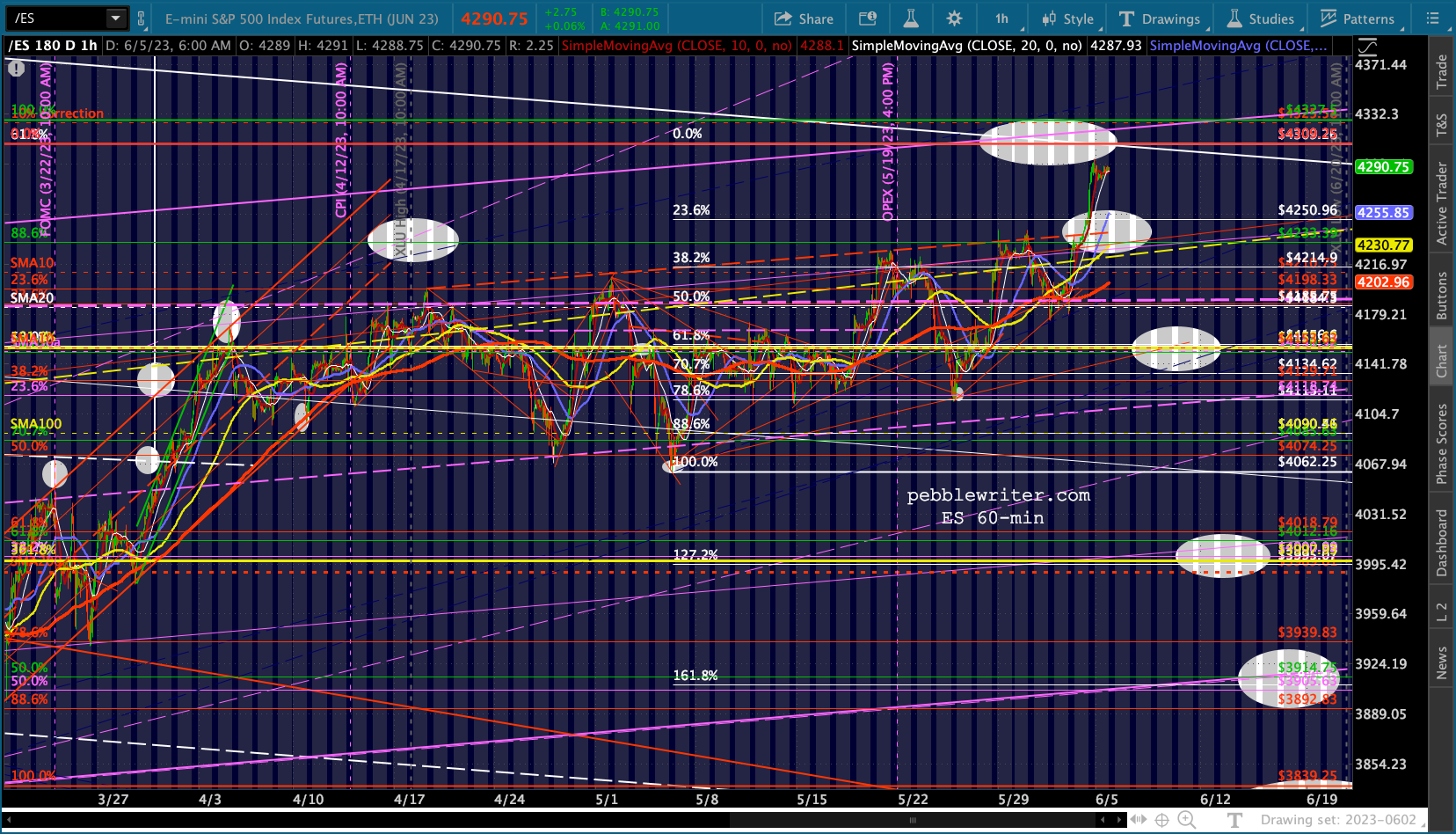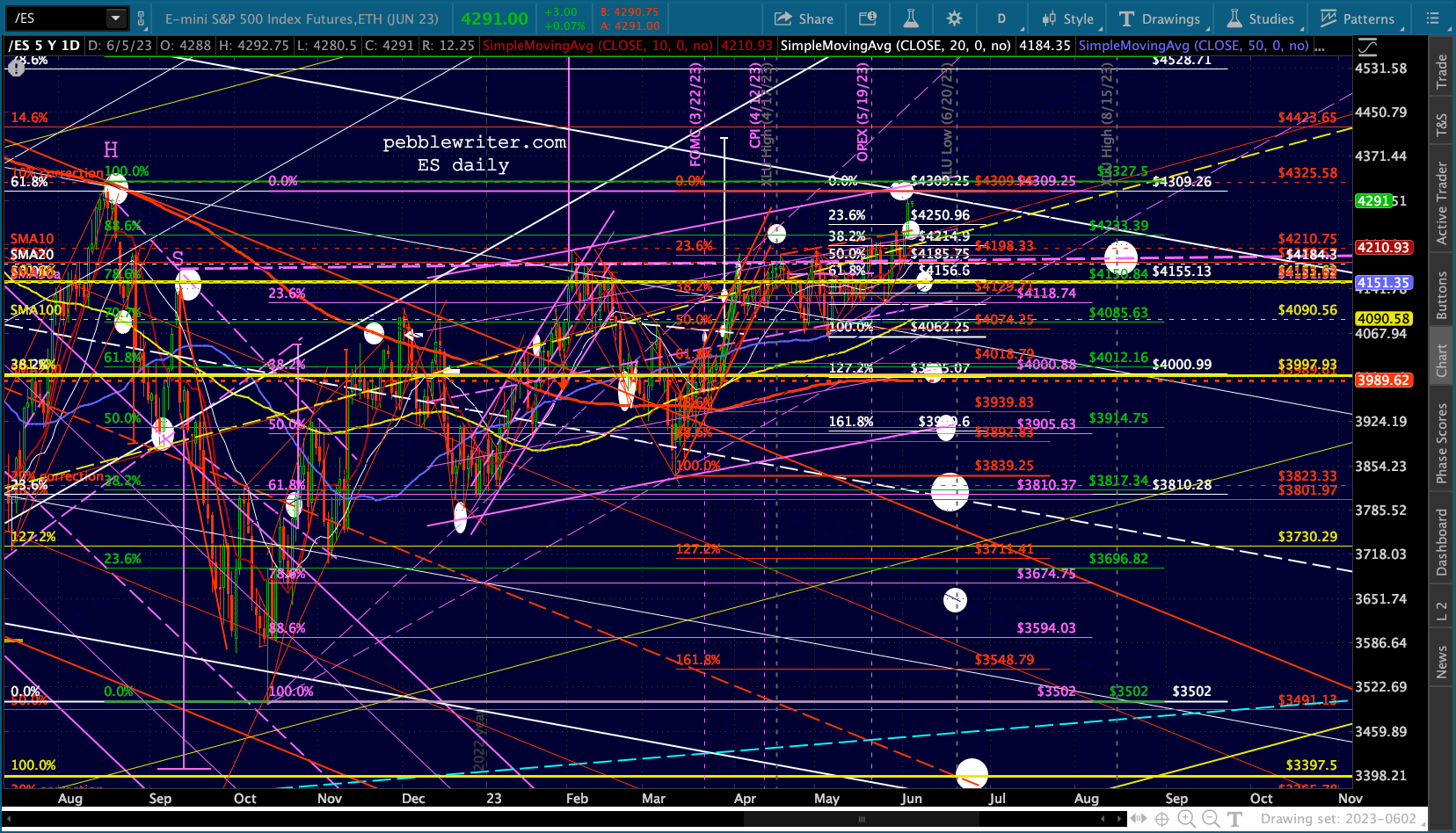 continued for members…This puts SPX and ES very close to their next overhead resistance levels – the .618 Fib retracements from all-time highs in Jan 2022.
