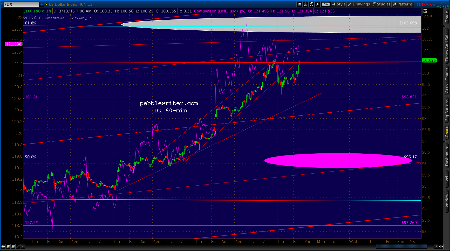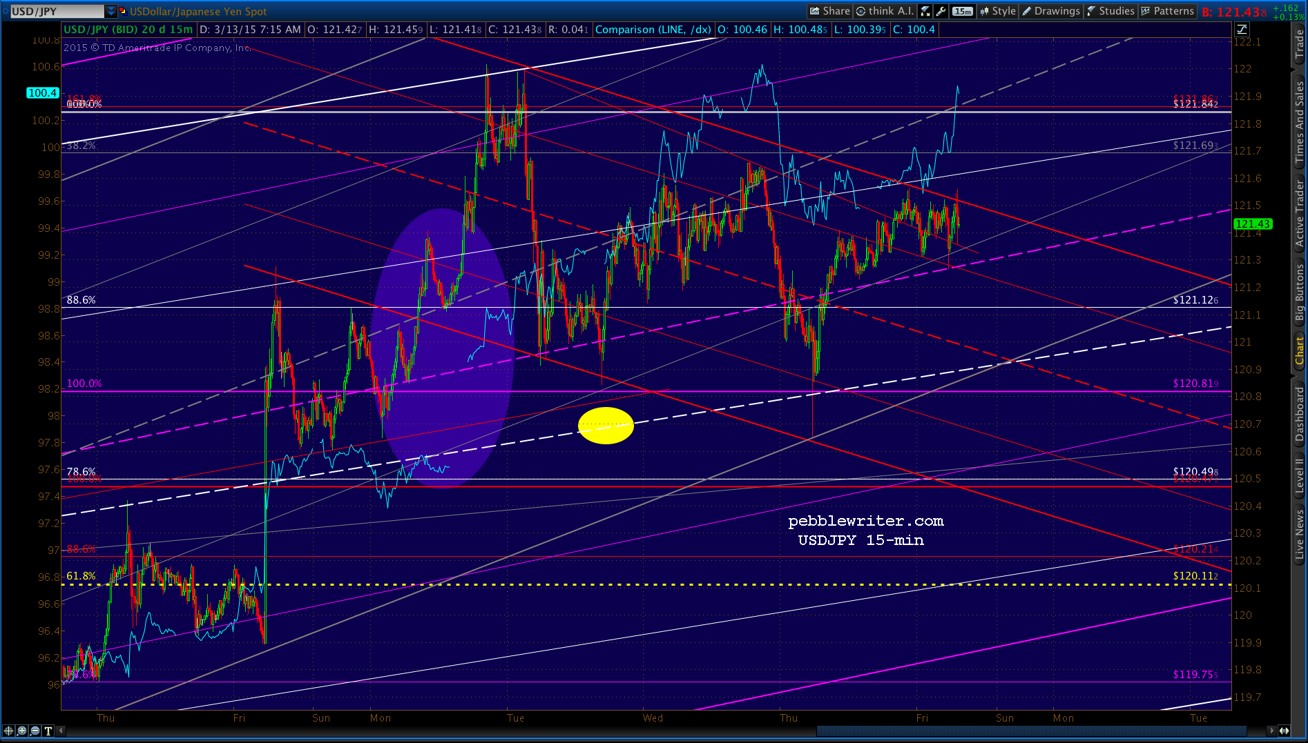 CL may or may not be ready to bounce. But, USDJPY has done an excellent job of offsetting it so far — going so far as to construct the rising gray channel within the rising purple channel within the rising white channel.