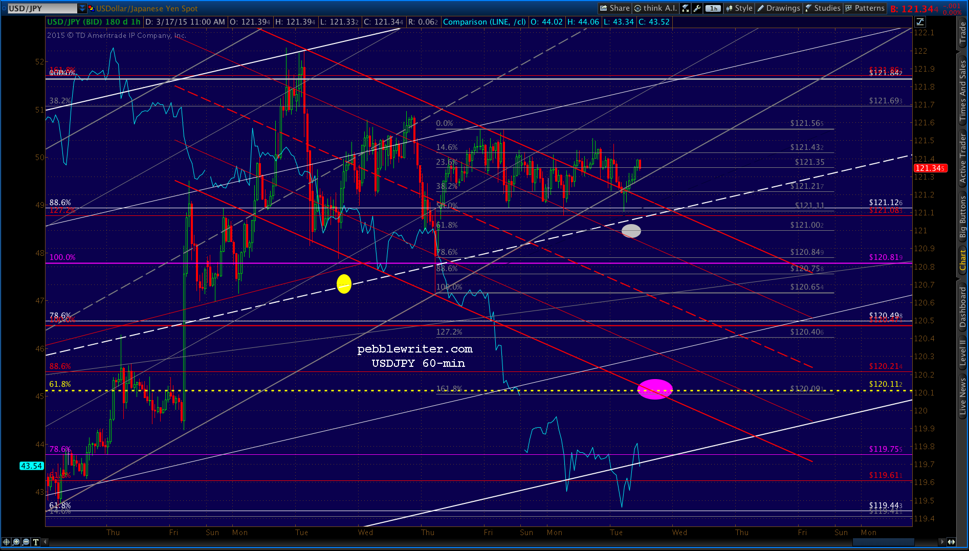 The optimal timing for USDJPY to reach 120.11 and CL to reach 46 would be around midnight tonight (EDT.) But, we’ll have to wait and see what TPTB have in mind, and how the “market” responds.