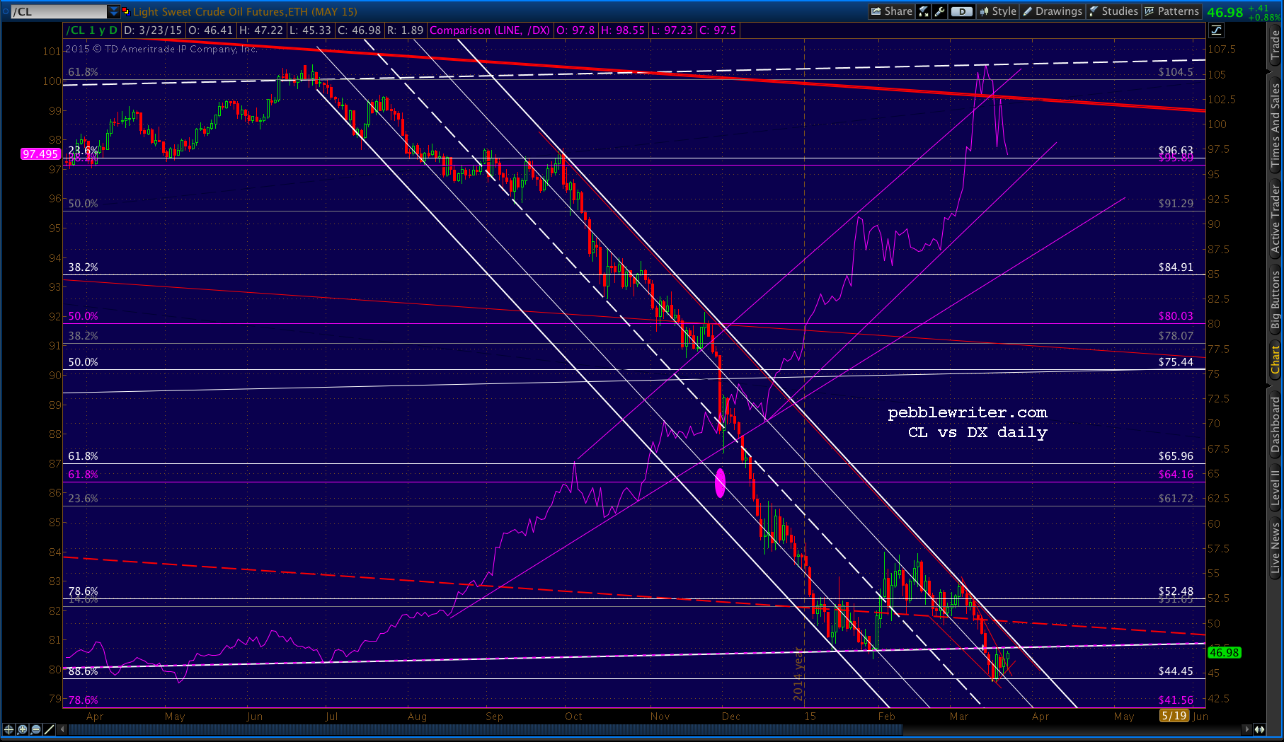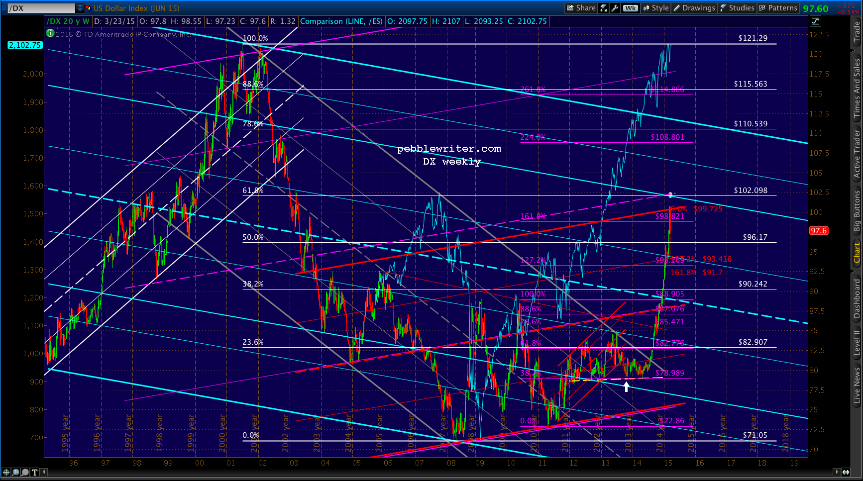I can make an argument that DX has suffered some technical setbacks over the past week or so. But, the white .618 is still a bit higher at 102.098. The purple midline looks to cross it later this month or early April.