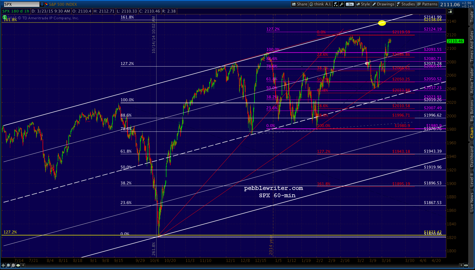 Clearly, when SPX was only 19 points away from 2138, they could have ramped it on up there overnight. Alternatively, they could have held the line on Mar 6 when it broke down through the white channel .786 line.