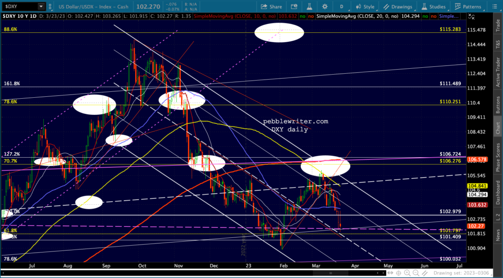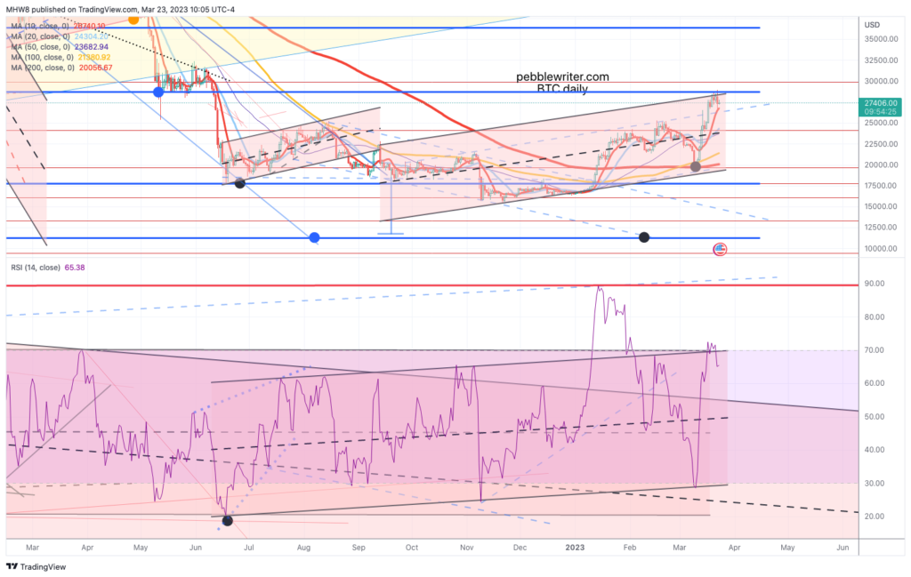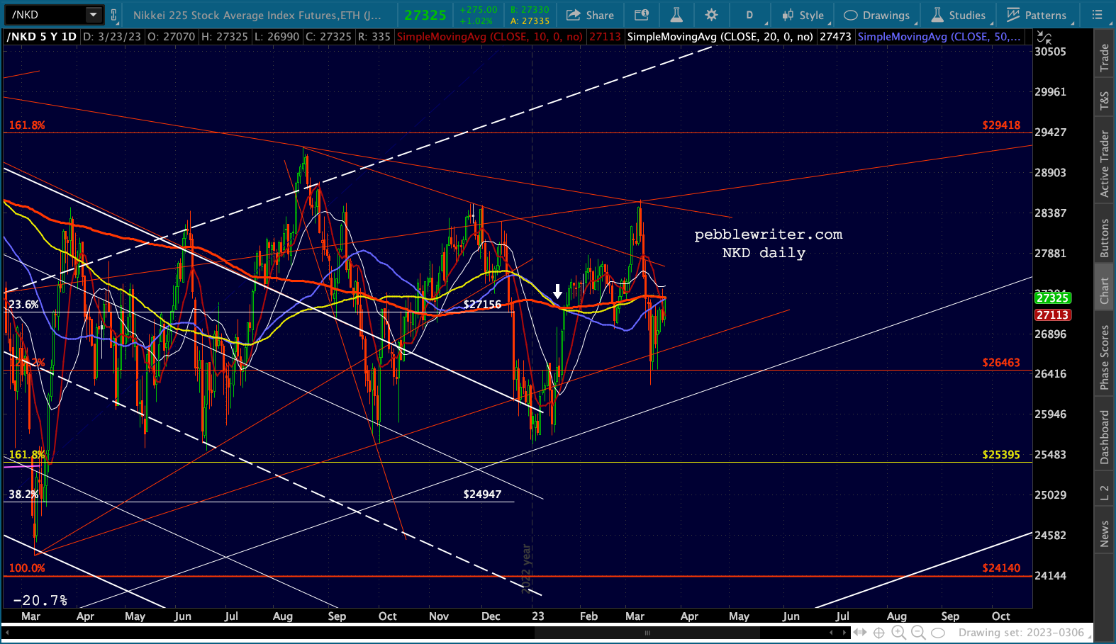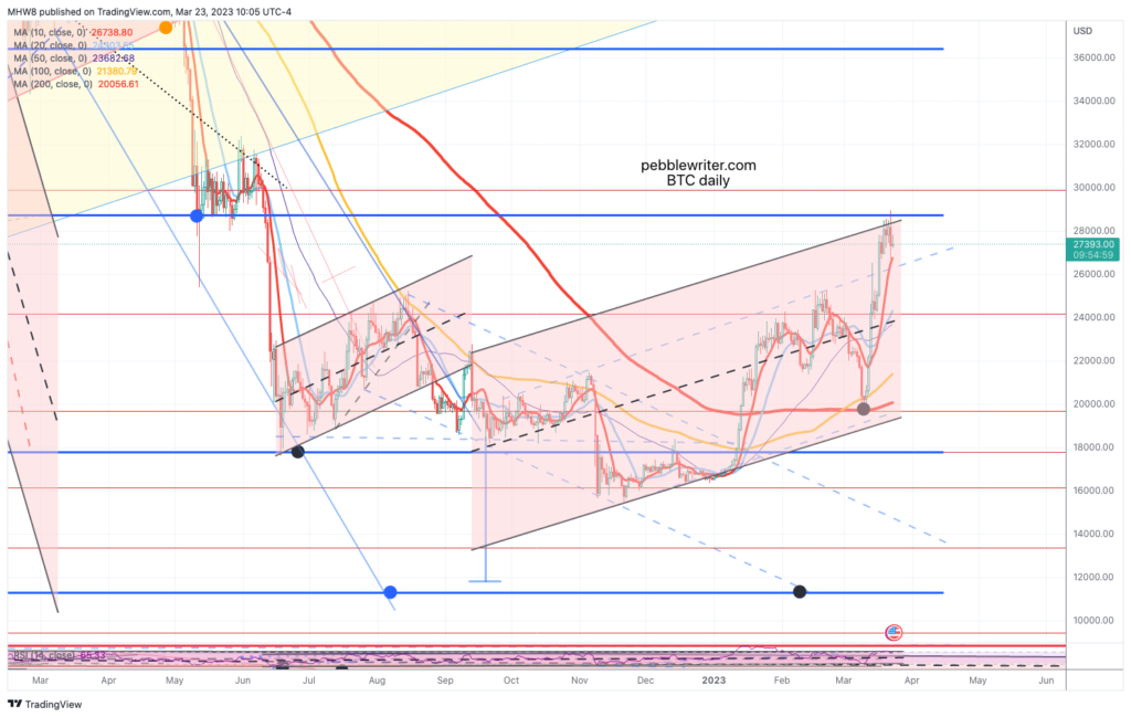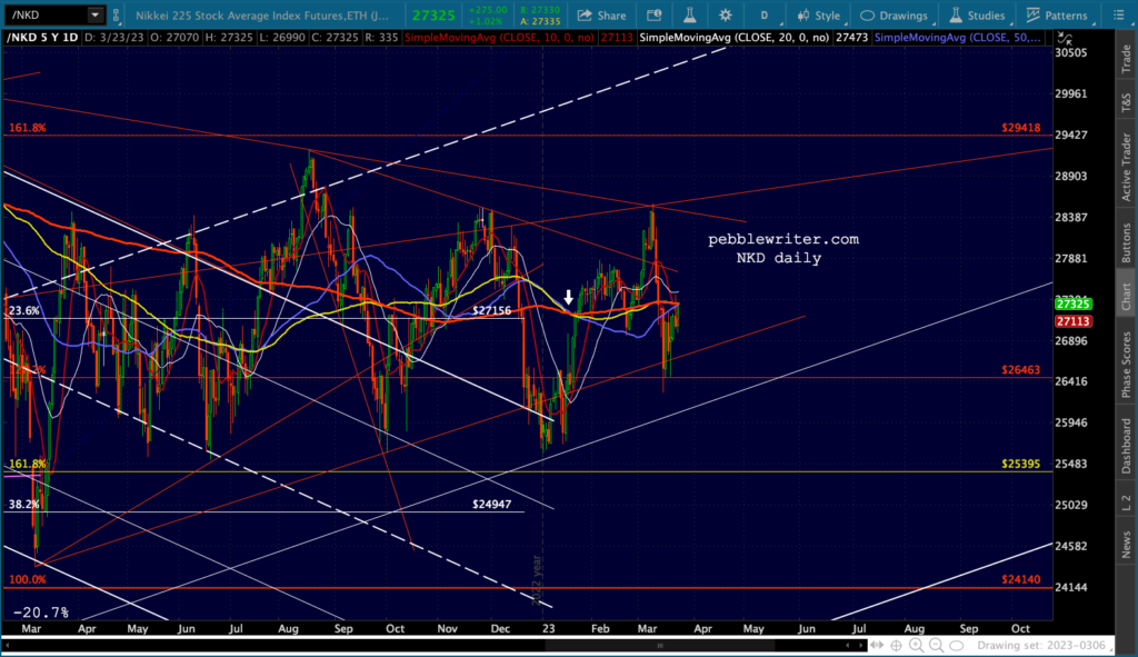 There’s plenty of room to fall, with support still at the SMA50, the red TL from Feb 2, and of course the red dashed TL from Jan 2018.