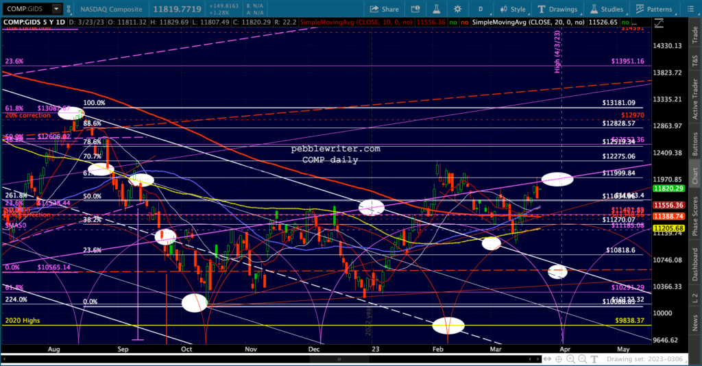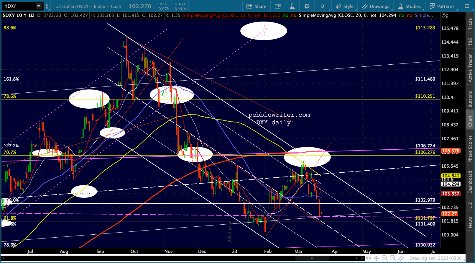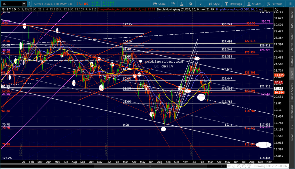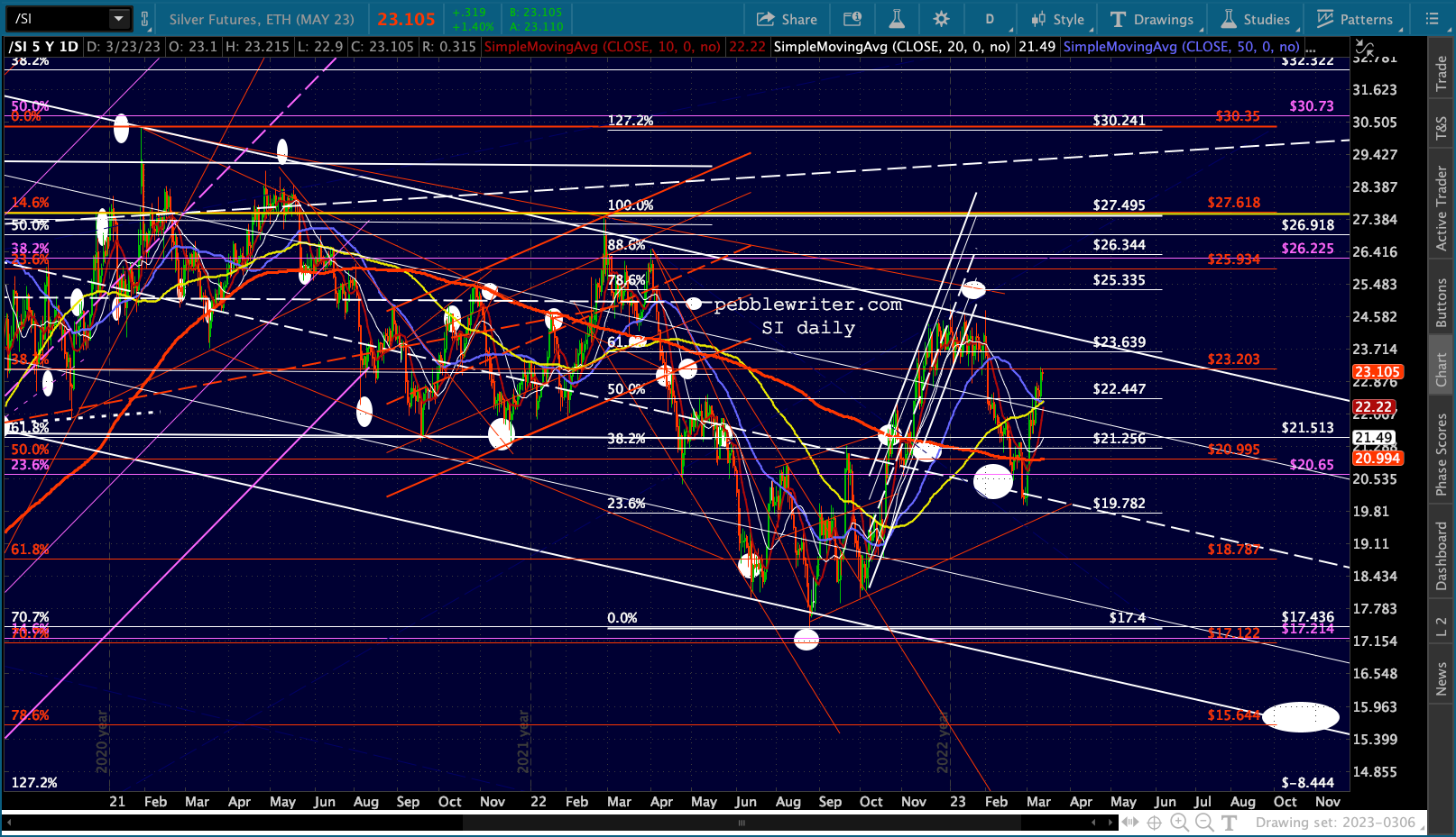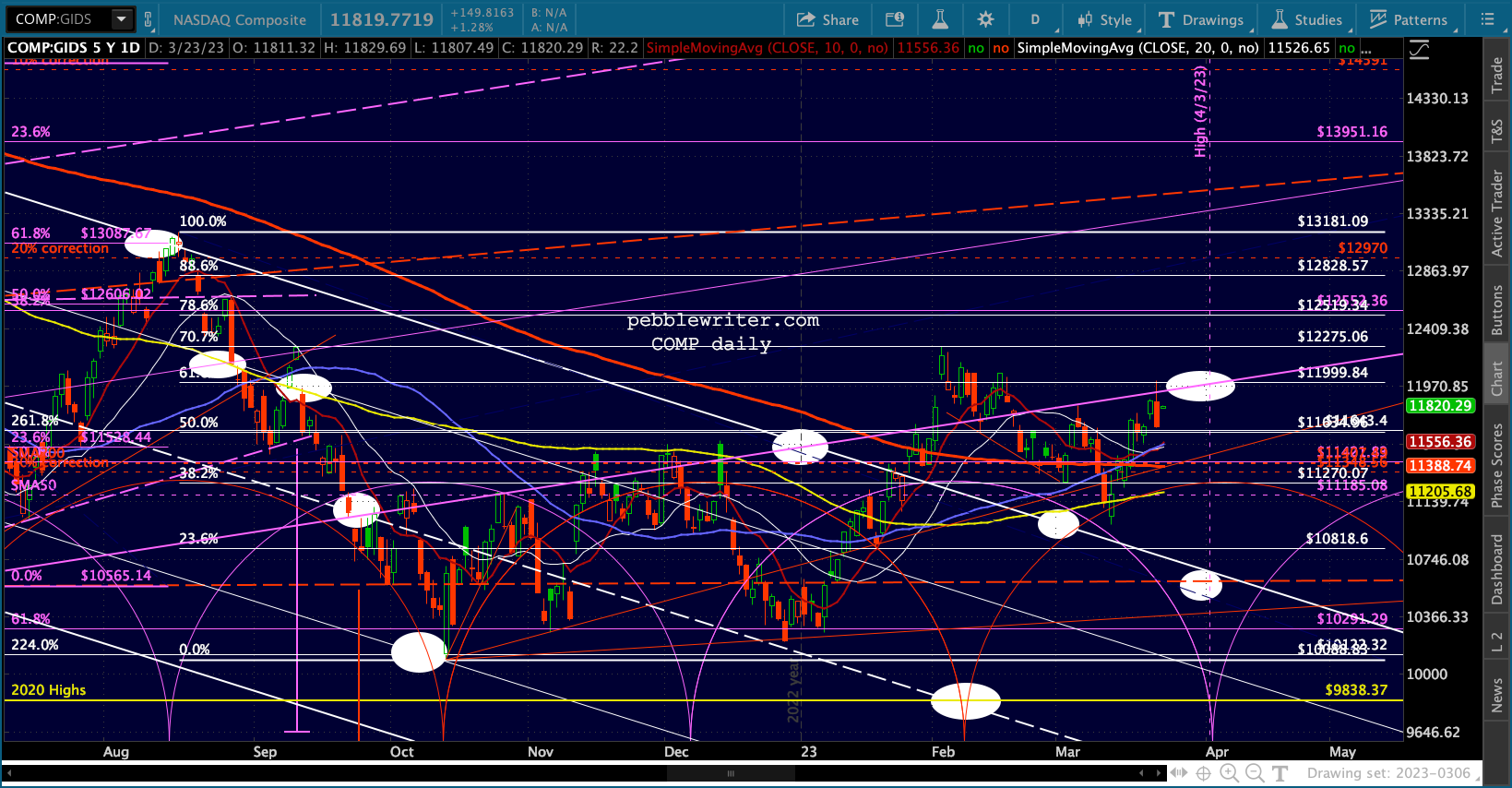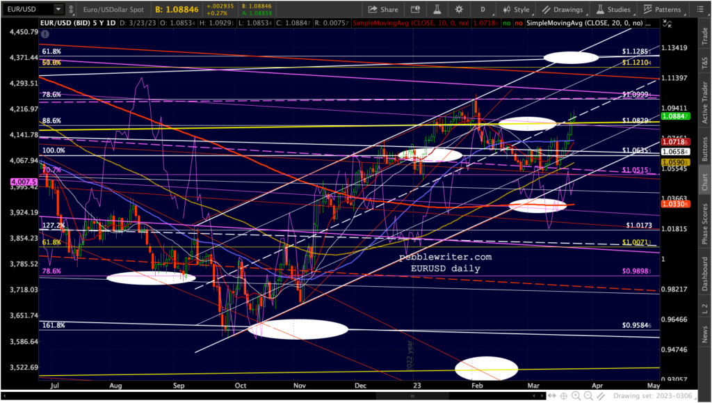 The EURUSD has probably run its course, with the latest rebound having reached the rising white channel midline. If it can break through, then the white .618 at 1.1285 is in play.