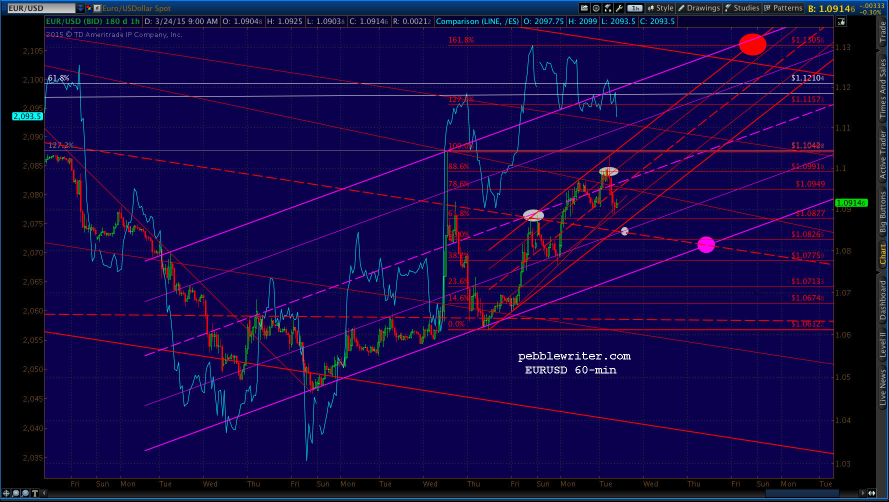I have to step out for a while and may not be back before the close. Keep an eye on USDJPY’s midline and EURUSD’s trendline — which was just broached.