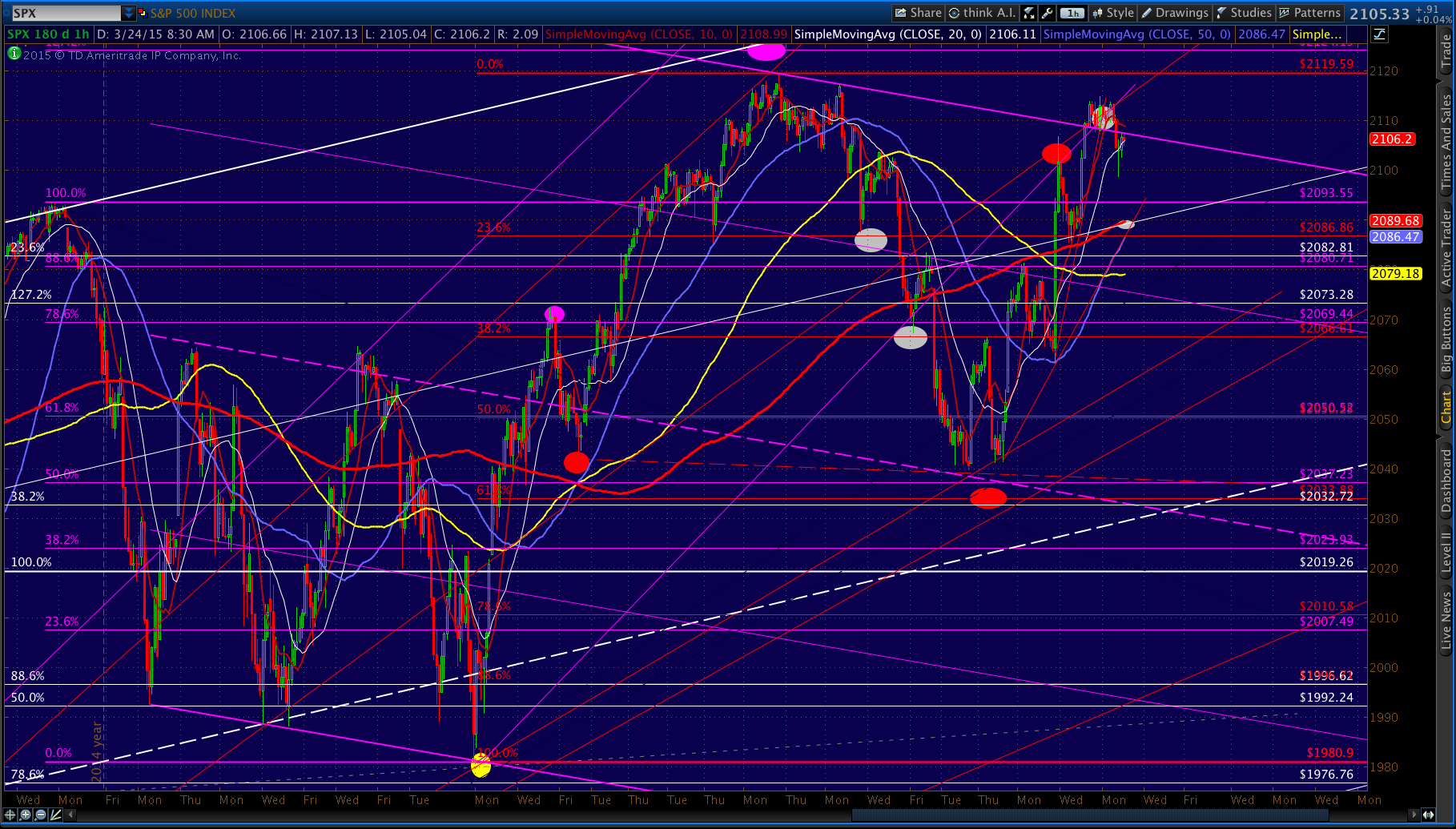 It will depend on what USDJPY does, but my favorite is the SMA20 at 2089.29 at the end of today’s session. It’s also the red .618, which is a common enough retracement for a Bat Pattern completion in this unending rally, and intersects a TL off last week’s lows.
