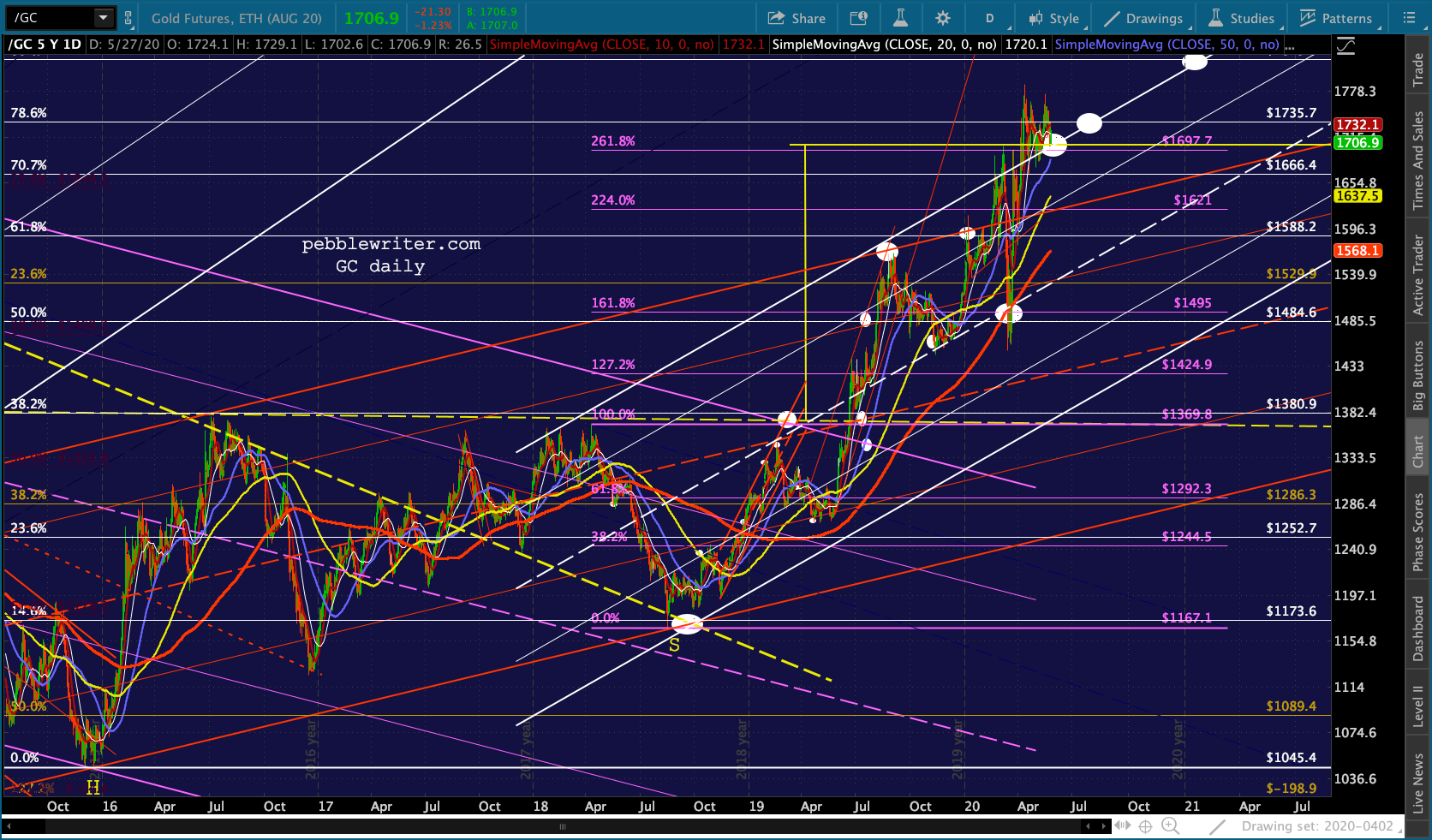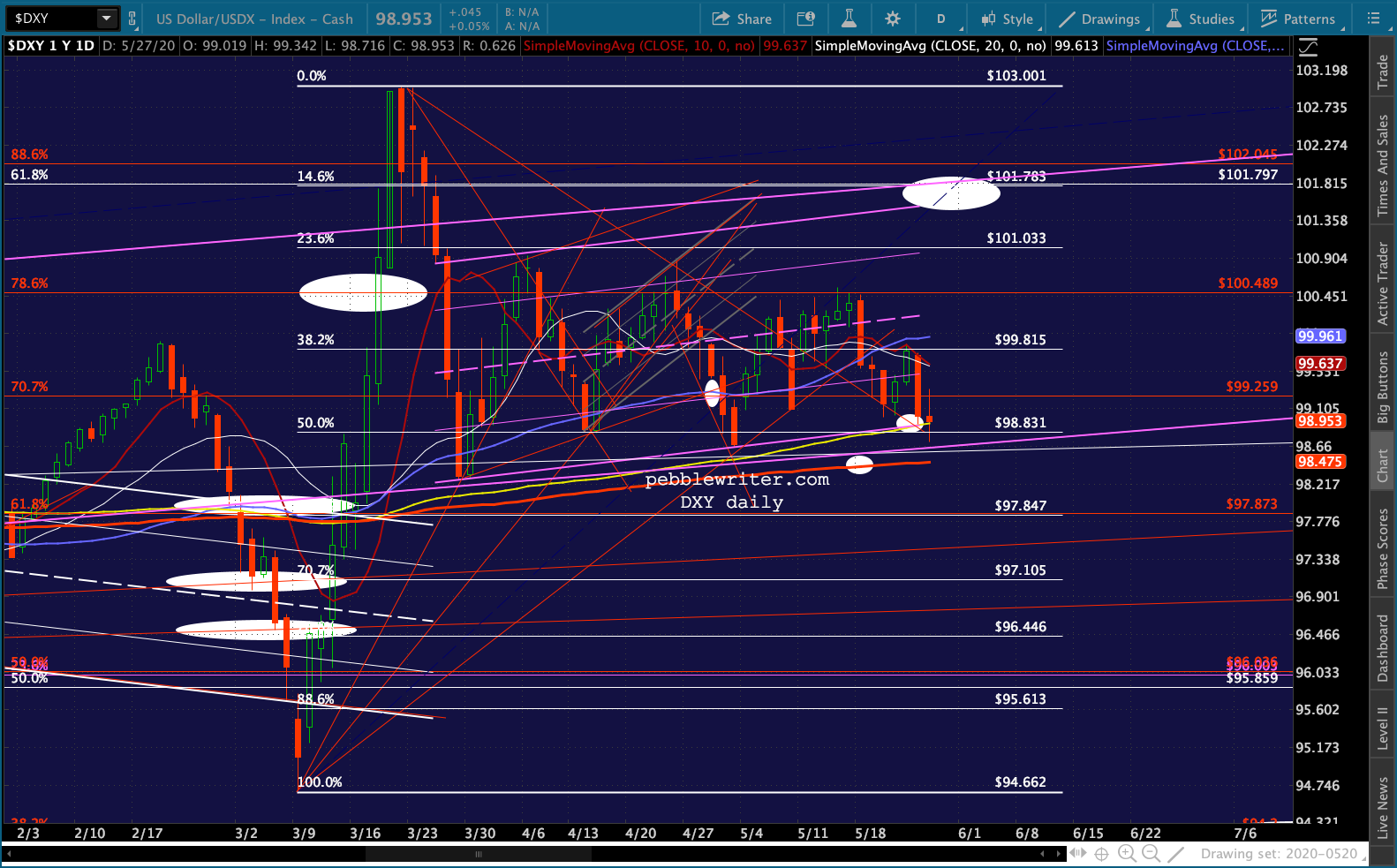 Note the plethora of resistance just overhead – most importantly the SMA200, of course, but also the yellow TL, the IH&S target, channel lines and Fibs.