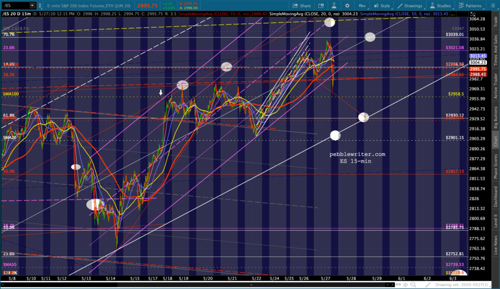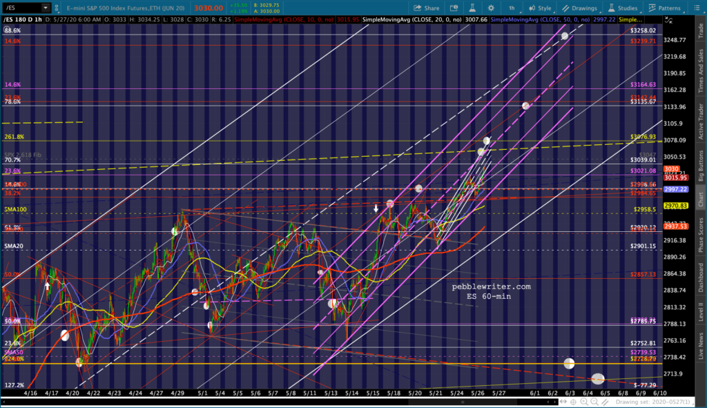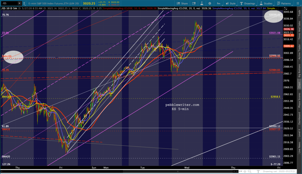 It didn’t yesterday. The white acceleration channel broke down at the close, taking ES and SPX back below critical support.
